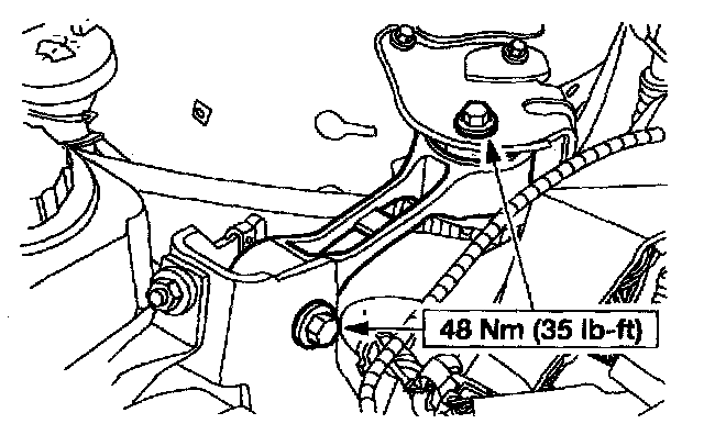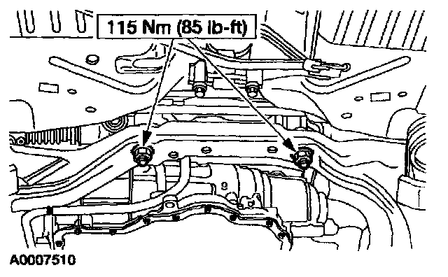 1. Remove the bolts and the engine roll restrictor (if equipped).