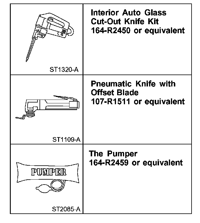 10. Install the special tool into the top of the windshield glass and inflate. Cut the urethane adhesive from corner to corner along the bottom of the windshield glass.