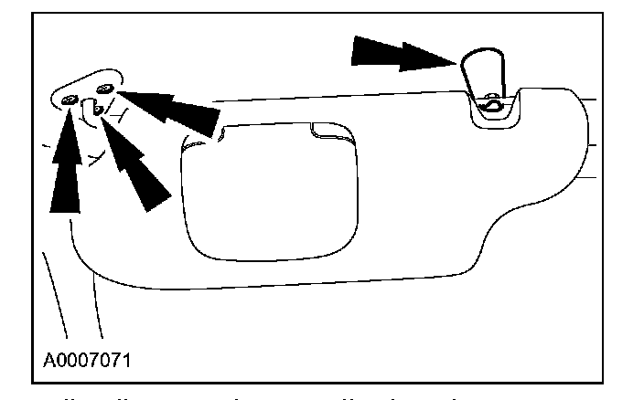 14. Install the two sun visor clips, the LH and RH sun visors, and the eight screws.