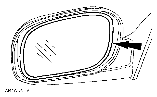 2. Push in the upper edge of the exterior rear view mirror glass to the maximum travel and gently pull outward until the exterior rear view mirror glass is released.