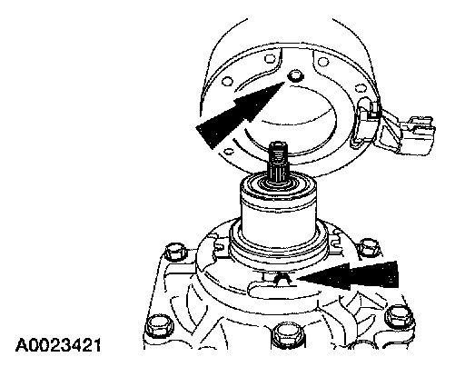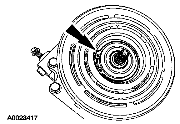 CAUTION: There is an indexing locator on the A/C clutch field coil mounting surface. Make sure it is correctly aligned during installation to the A/C compressor.