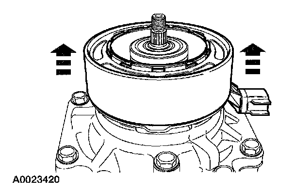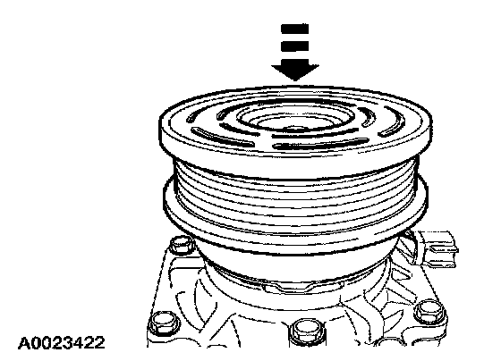 NOTE: The A/C clutch pulley fits tightly to the A/C compressor. It must be aligned correctly for installation.