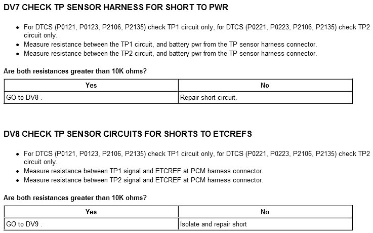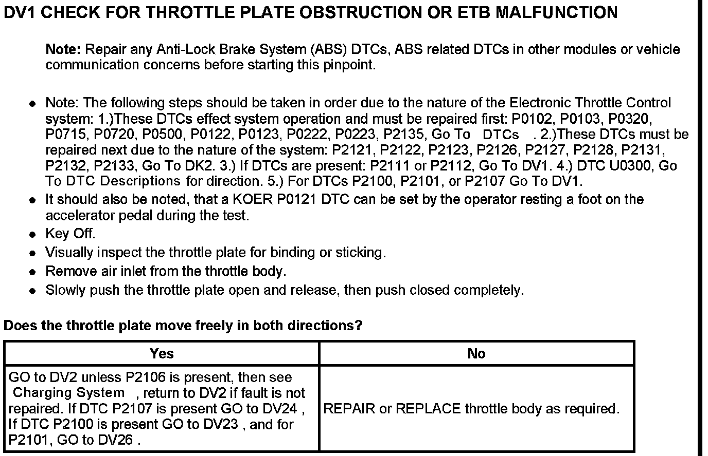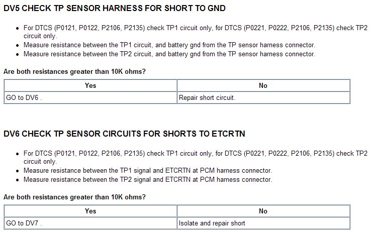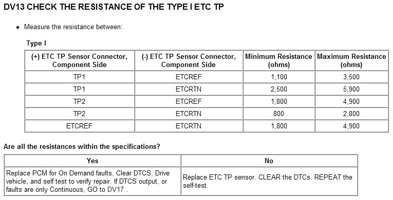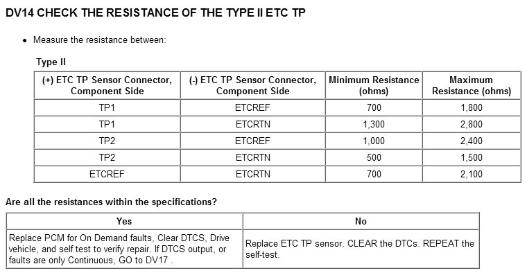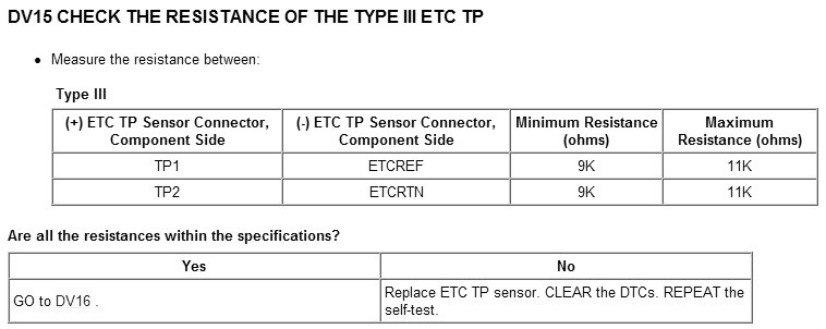 Tests DV: Electronic Throttle Control TPS Throttle Control Motor