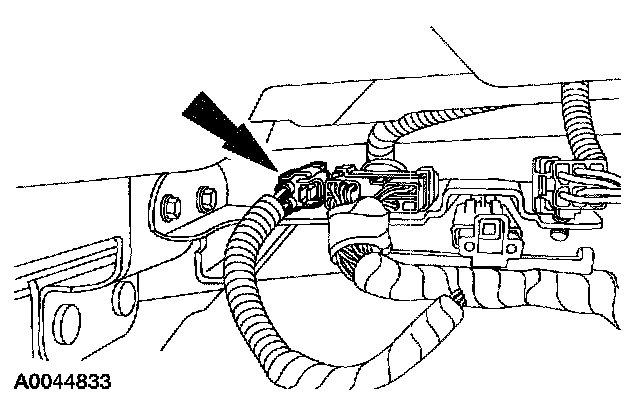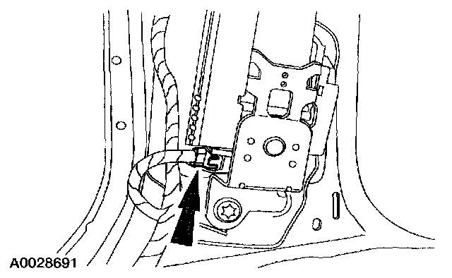 1. Remove the restraint system diagnostic tool from the driver safety belt retractor pretensioner electrical connector.