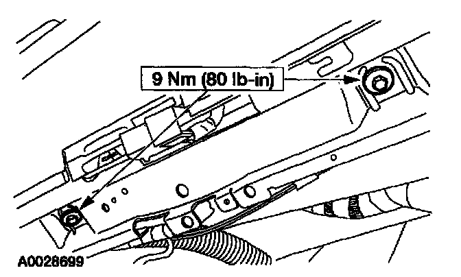 23. Through the glove compartment opening, install the passenger air bag module bolts.