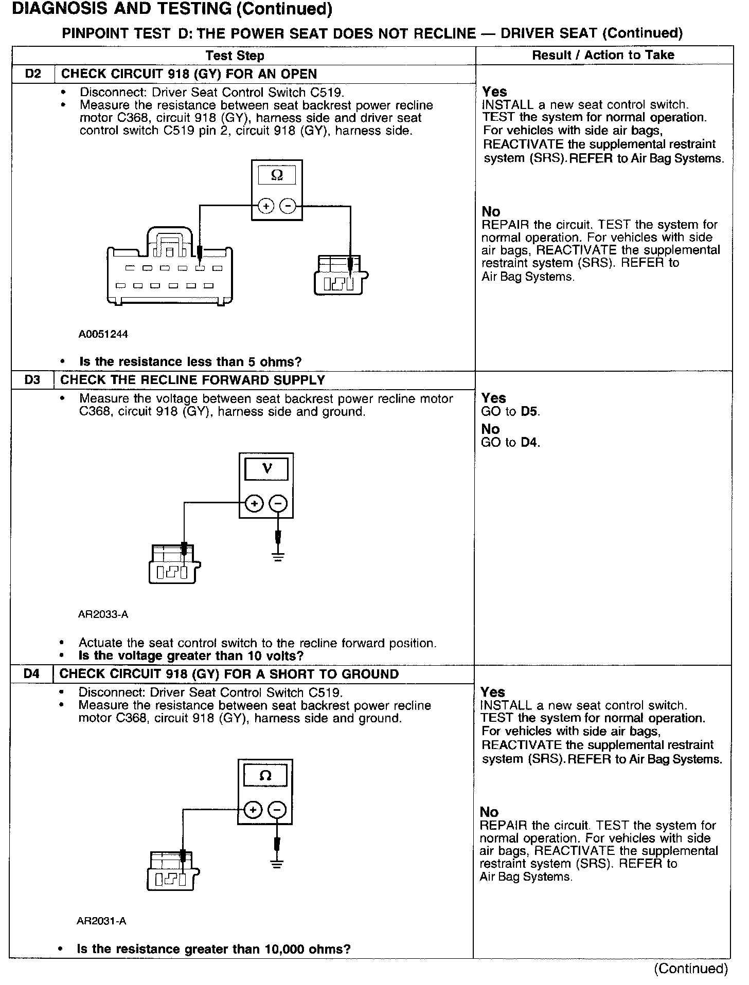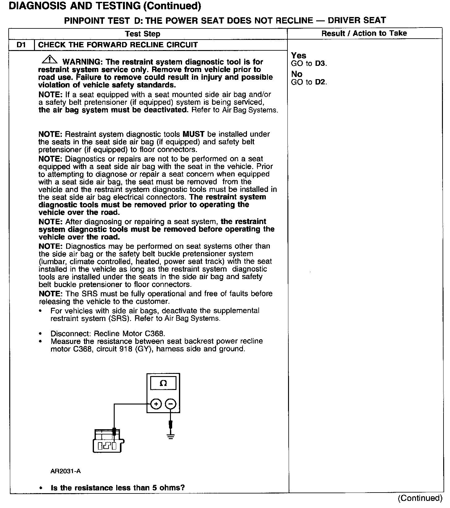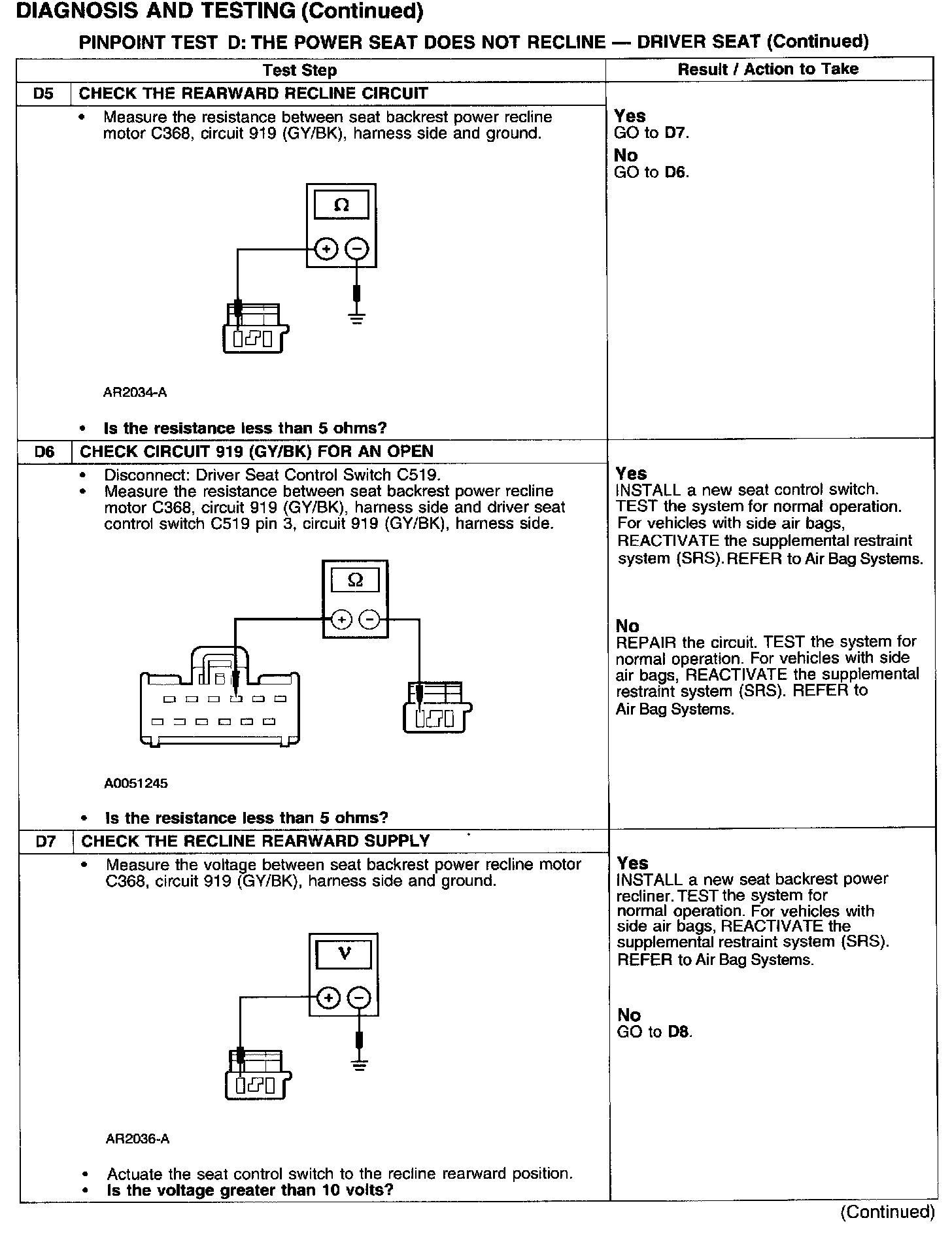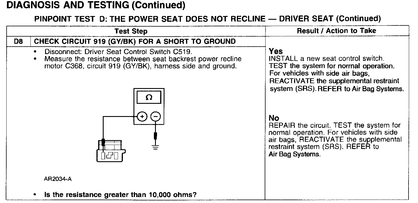 PINPOINT TEST D: THE POWER SEAT DOES NOT RECLINE - DRIVER SEAT