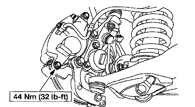 Remove the lower brake caliper bolt and loosen the upper brake caliper bolt.
