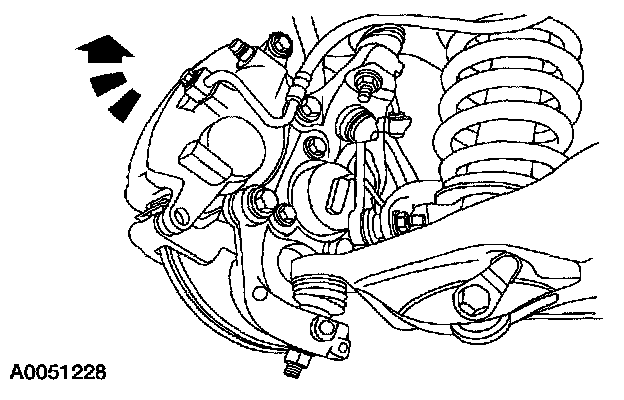 4. Detach the lining from the caliper and rotate the caliper upward.