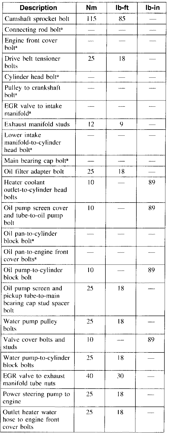 Torque Specifications