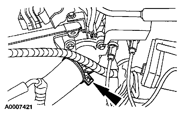 5. Using the special tool, disconnect the upper transmission cooler line.
