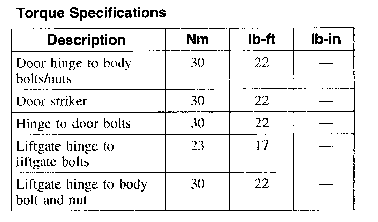 Torque Specifications: