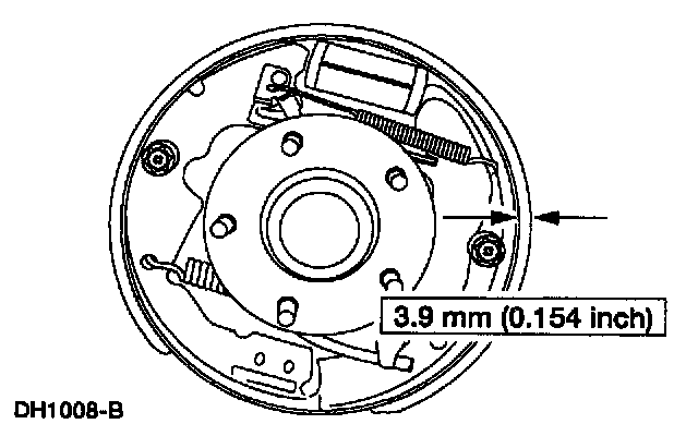 3. Inspect the rear brake shoes and linings for minimum thickness, above the backing plate or rivets, and install new as necessary.