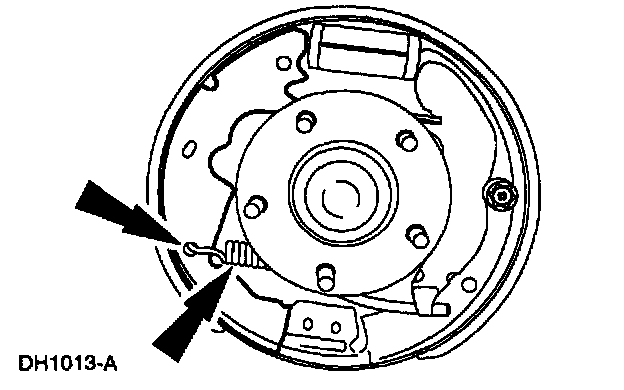 9. Remove the rear brake shoe hold-down spring.
