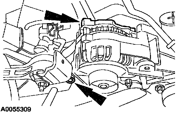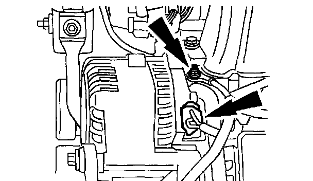 6. Disconnect the generator B+ cable and the voltage regulator electrical connector.