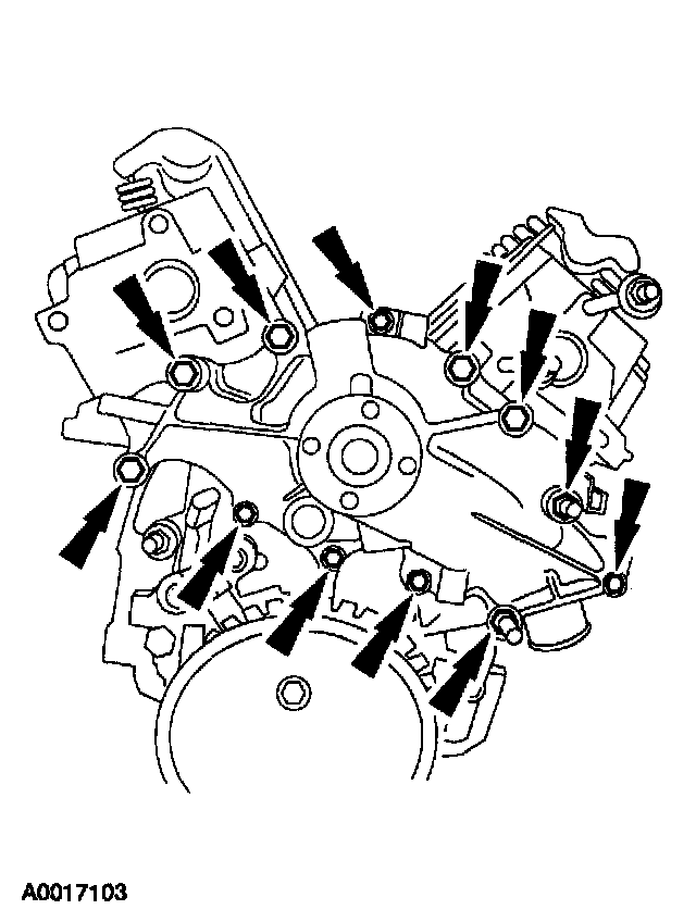 14. Remove the bolts and the water pump, and clean the sealing surfaces.