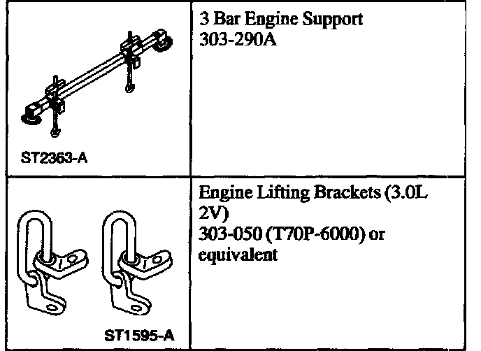 14. Using the special tools, raise the front of the engine.