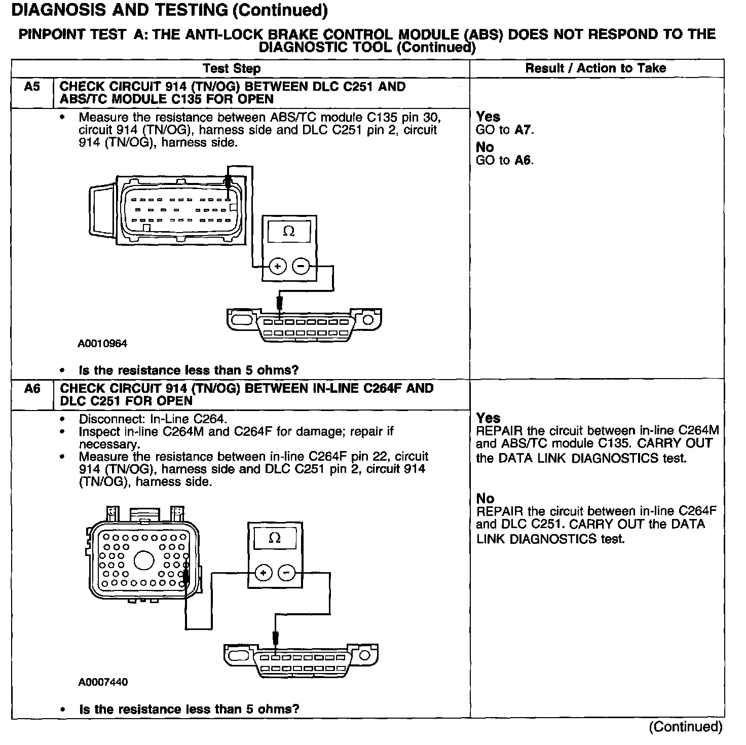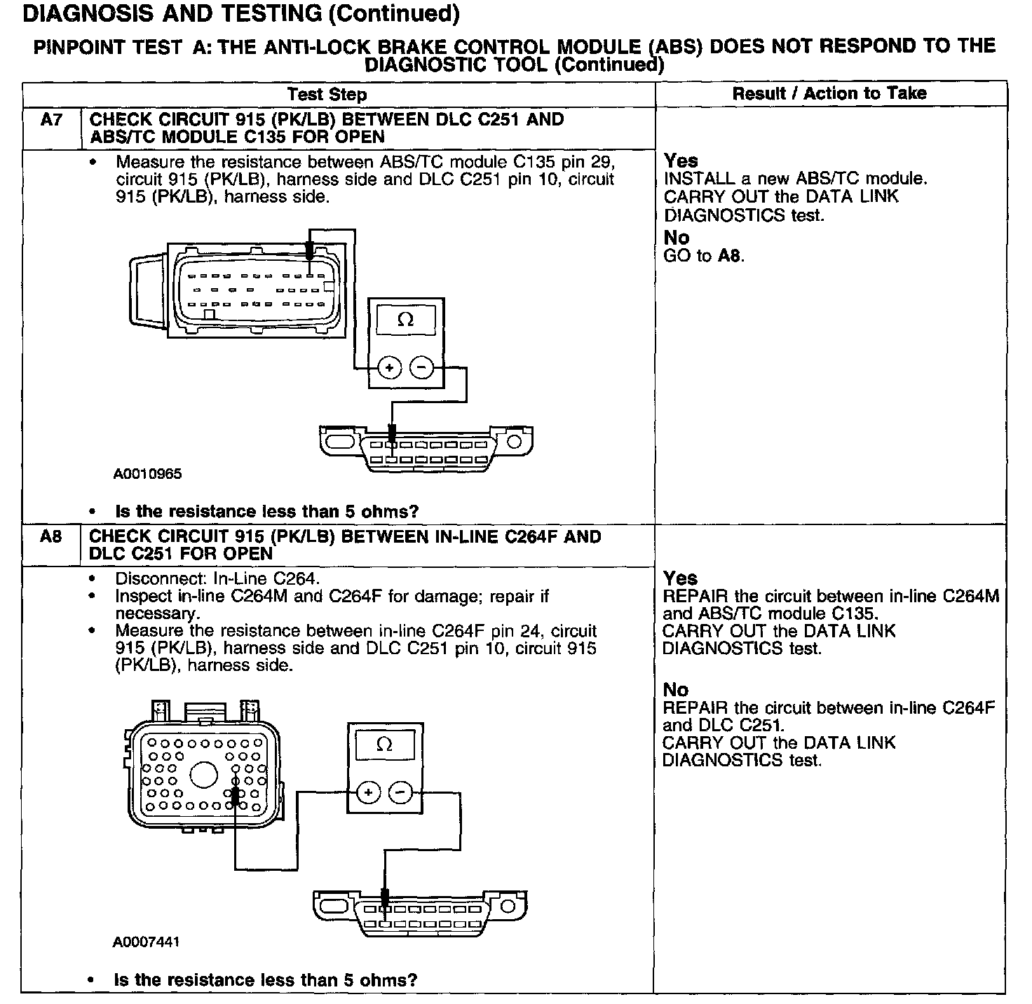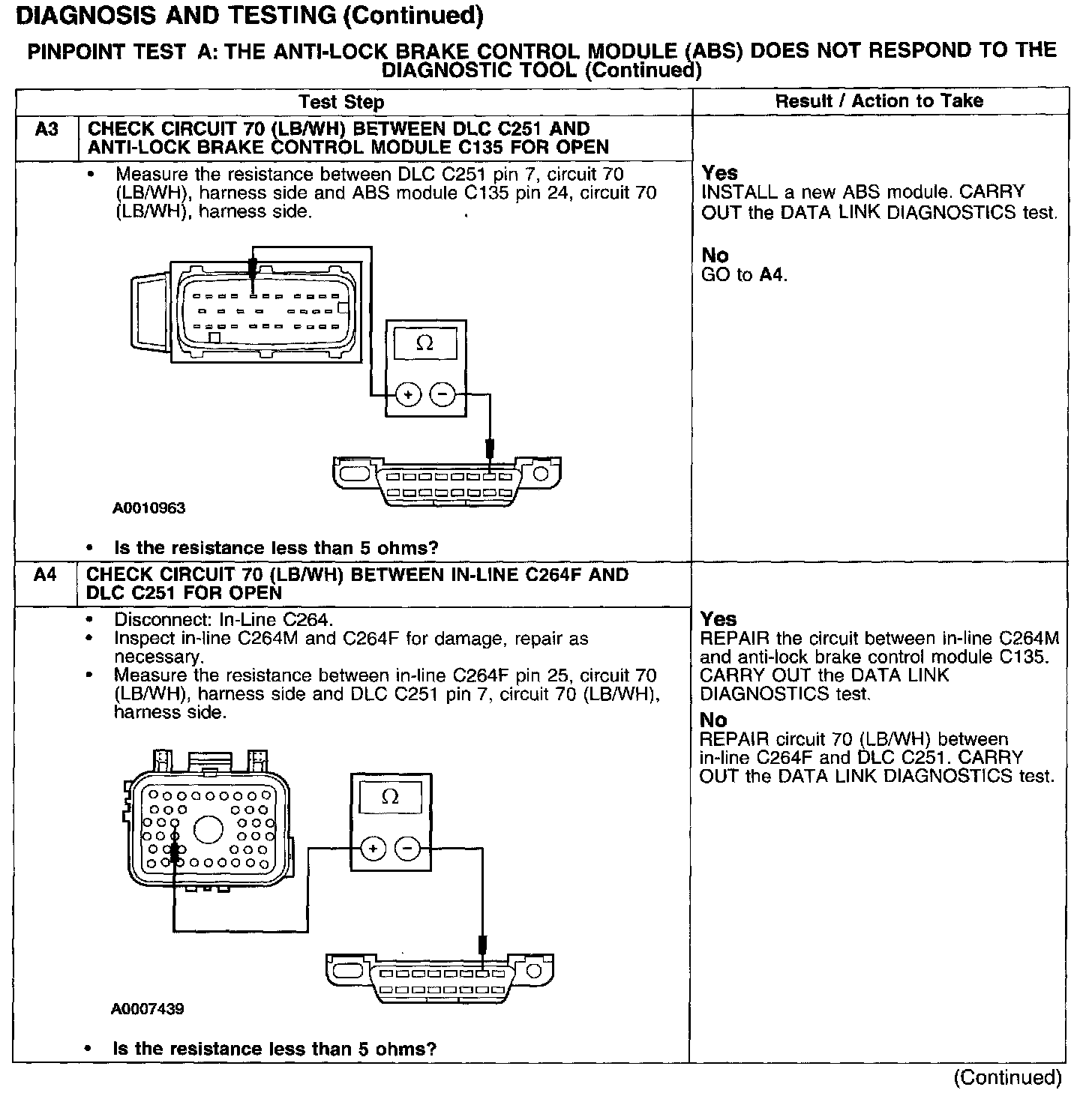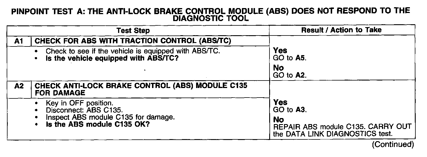 PINPOINT TEST A: THE ANTI-LOCK BRAKE CONTROL MODULE (ABS) DOES NOT RESPOND TO THE DIAGNOSTIC TOOL
