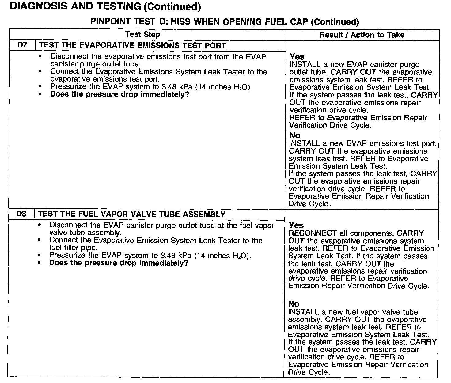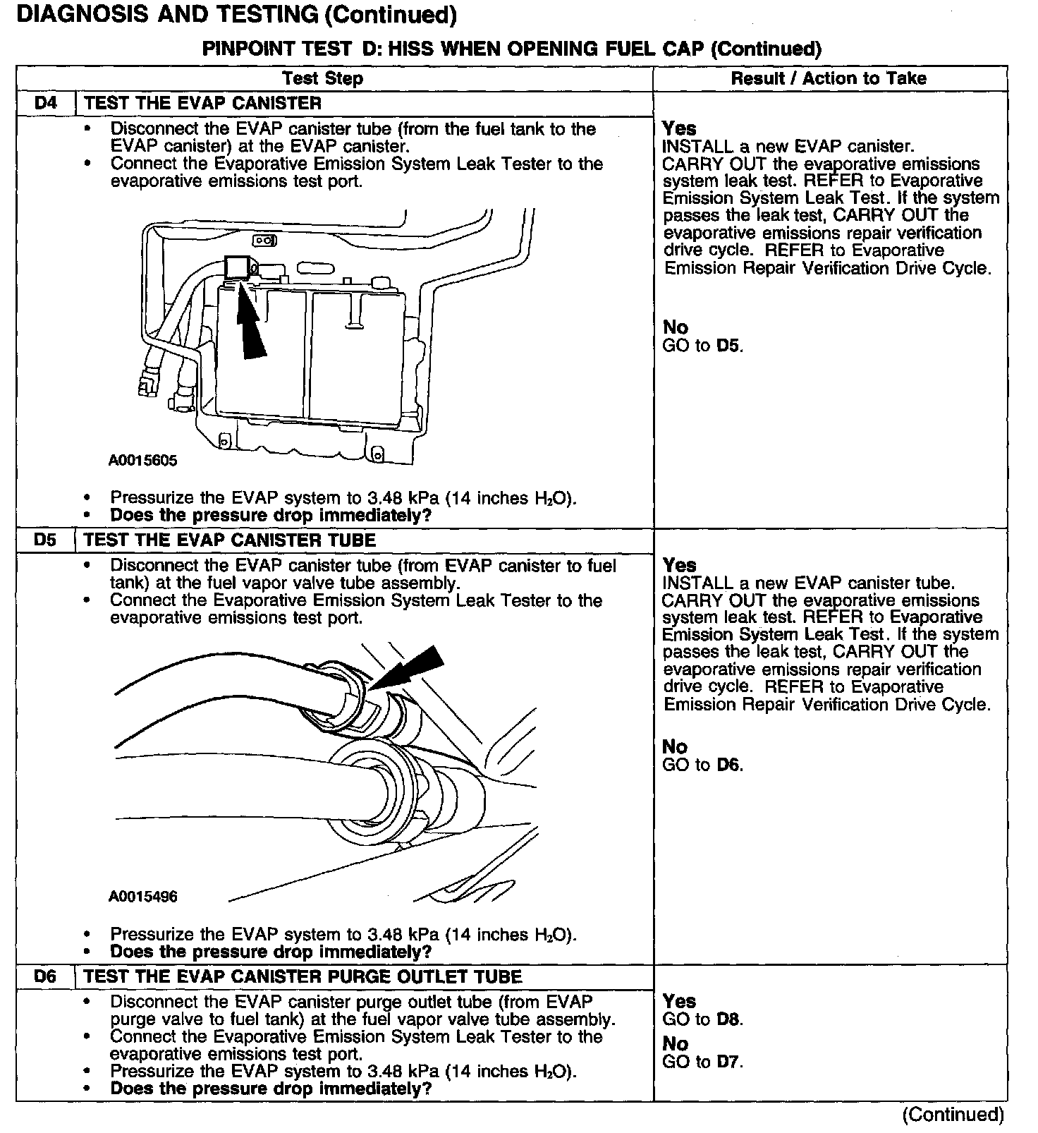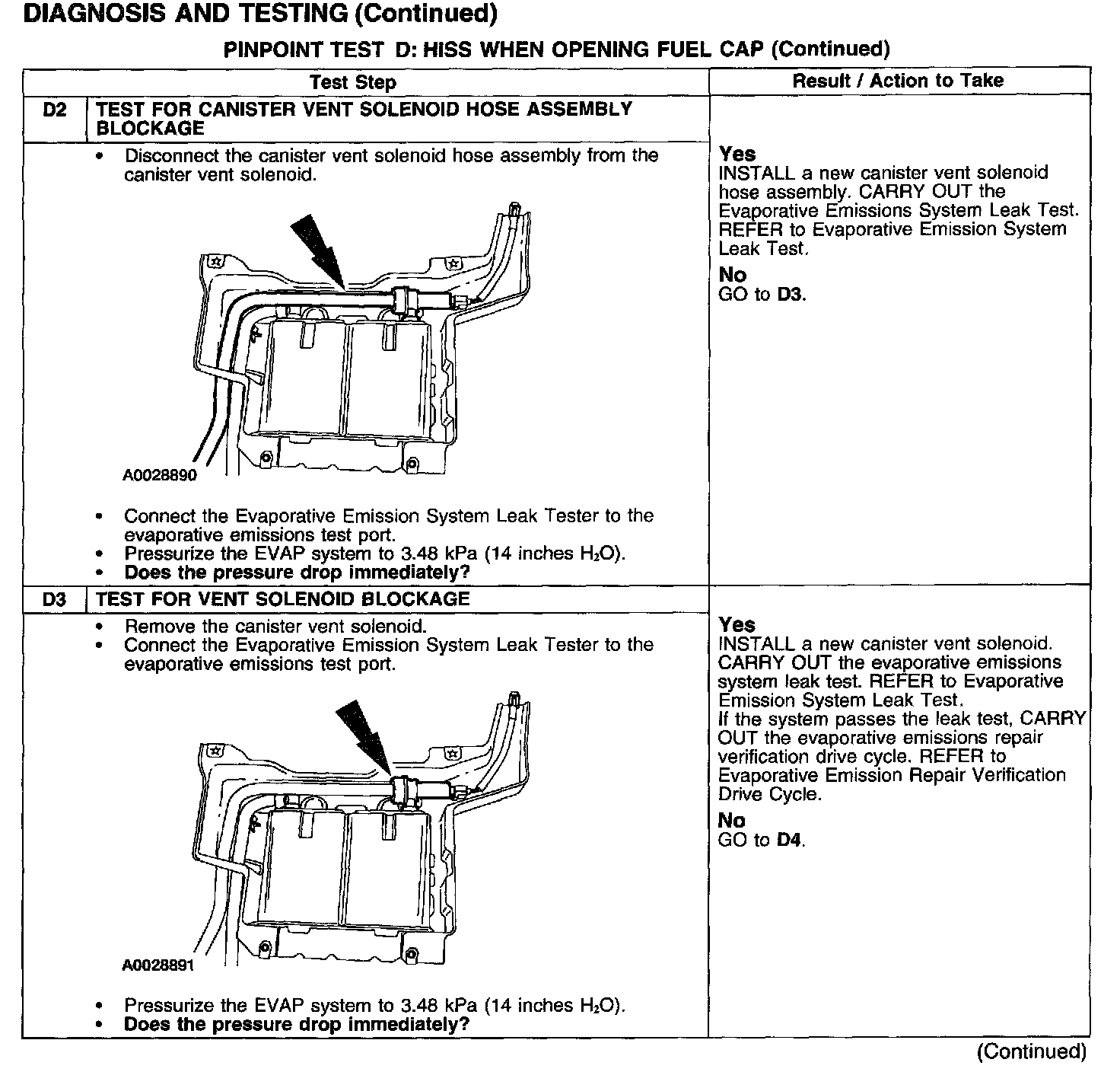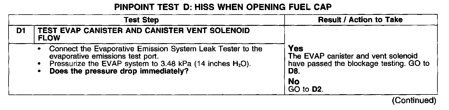 PINPOINT TEST D: HISS WHEN OPENING FUEL CAP