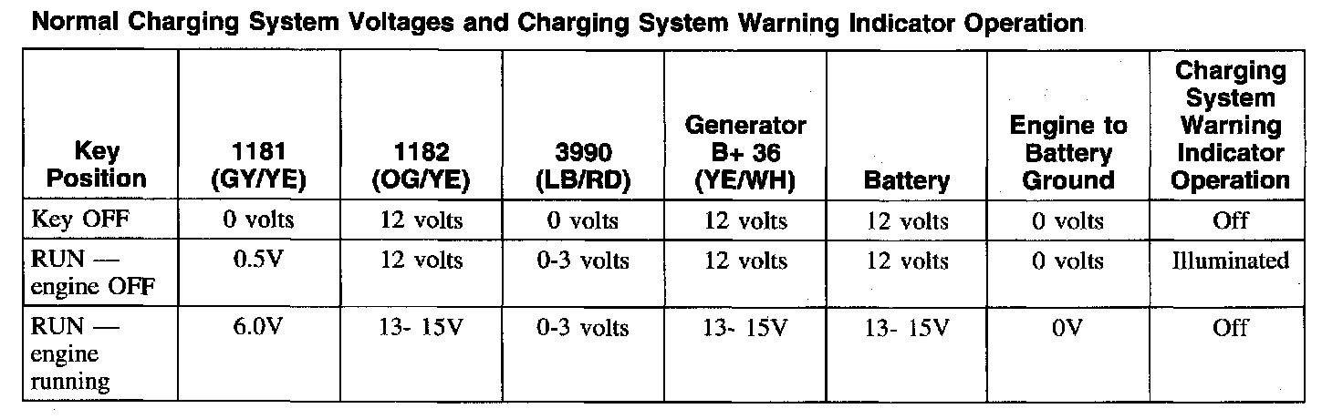 Normal Charging System Voltages And Charging System Warning Indicator Operation: