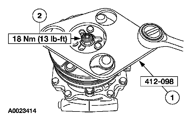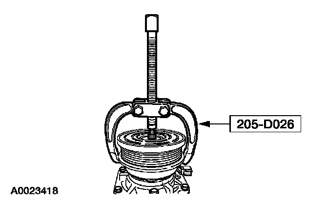 6. CAUTION: Do not use air tools. Damage to the A/C clutch pulley may result.