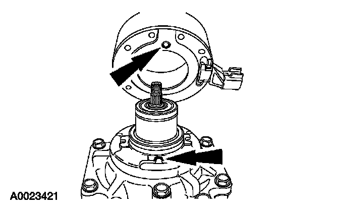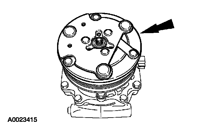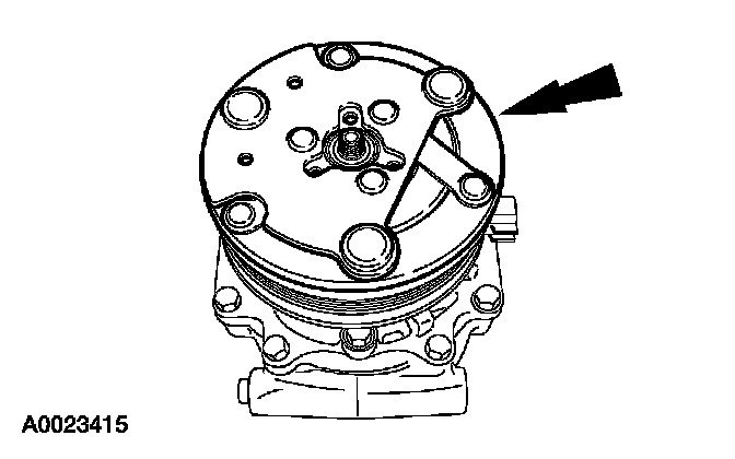 2. CAUTION: There is an indexing locator on the A/C clutch field coil mounting surface. Make sure it is correctly aligned during installation to the A/C compressor.