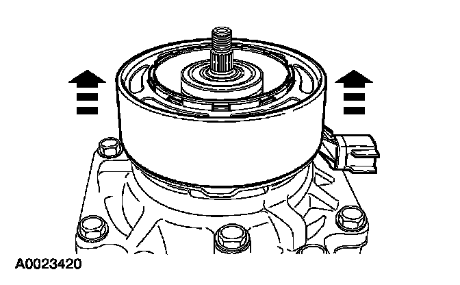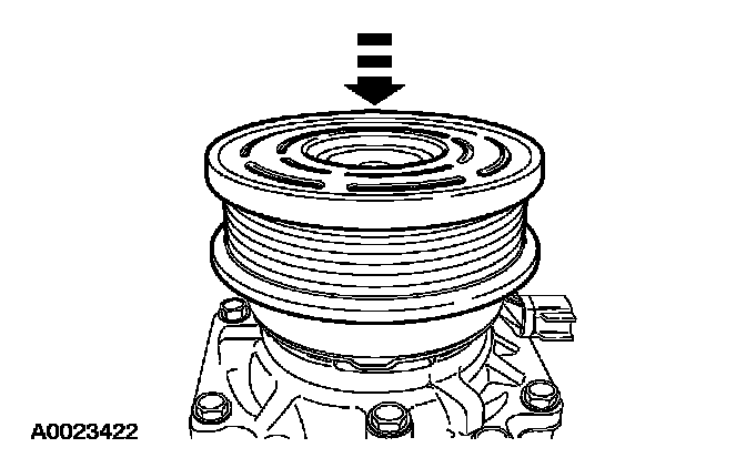 4. NOTE: The A/C clutch pulley fits tightly to the A/C compressor. It must be aligned correctly for installation.
