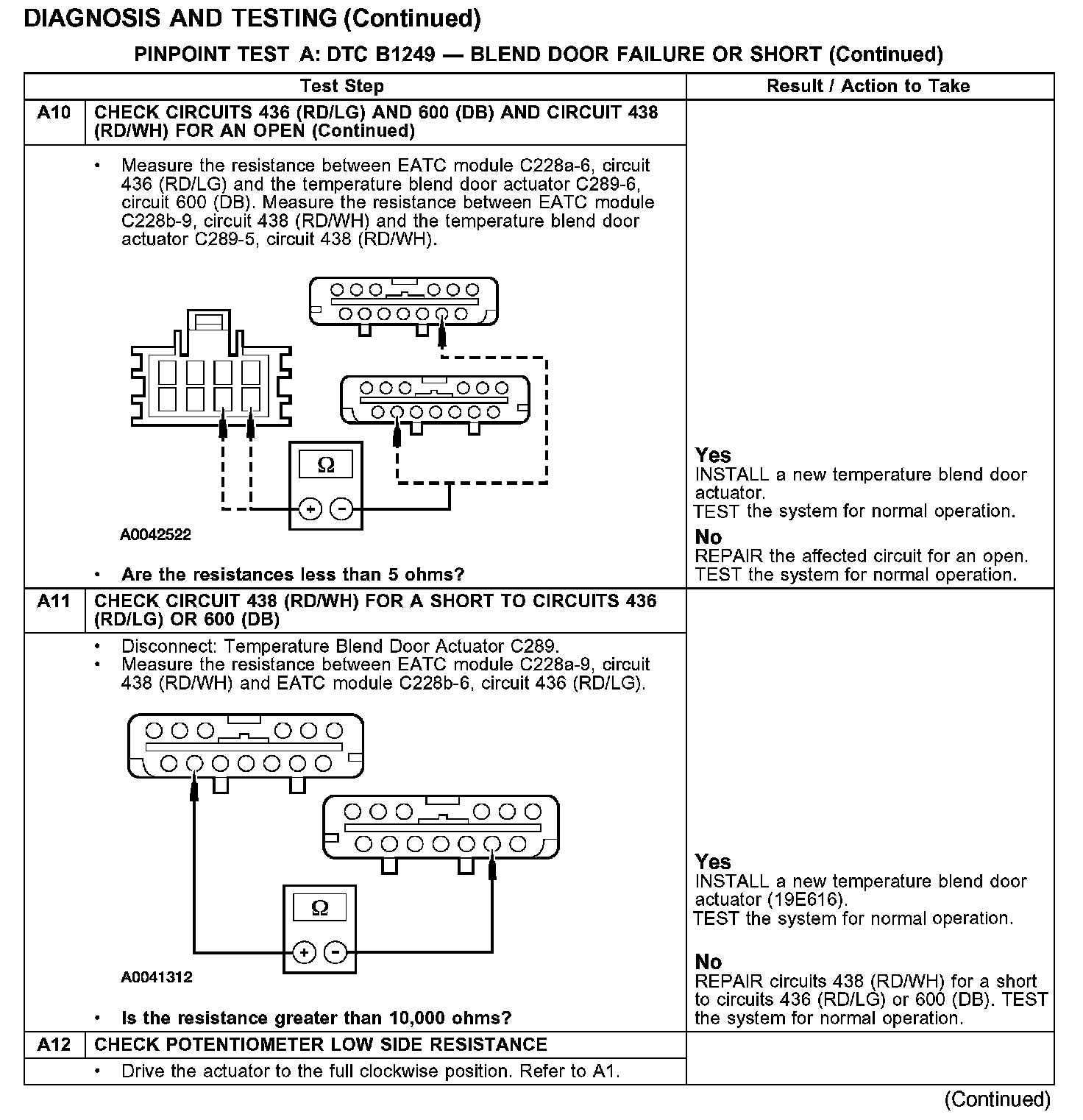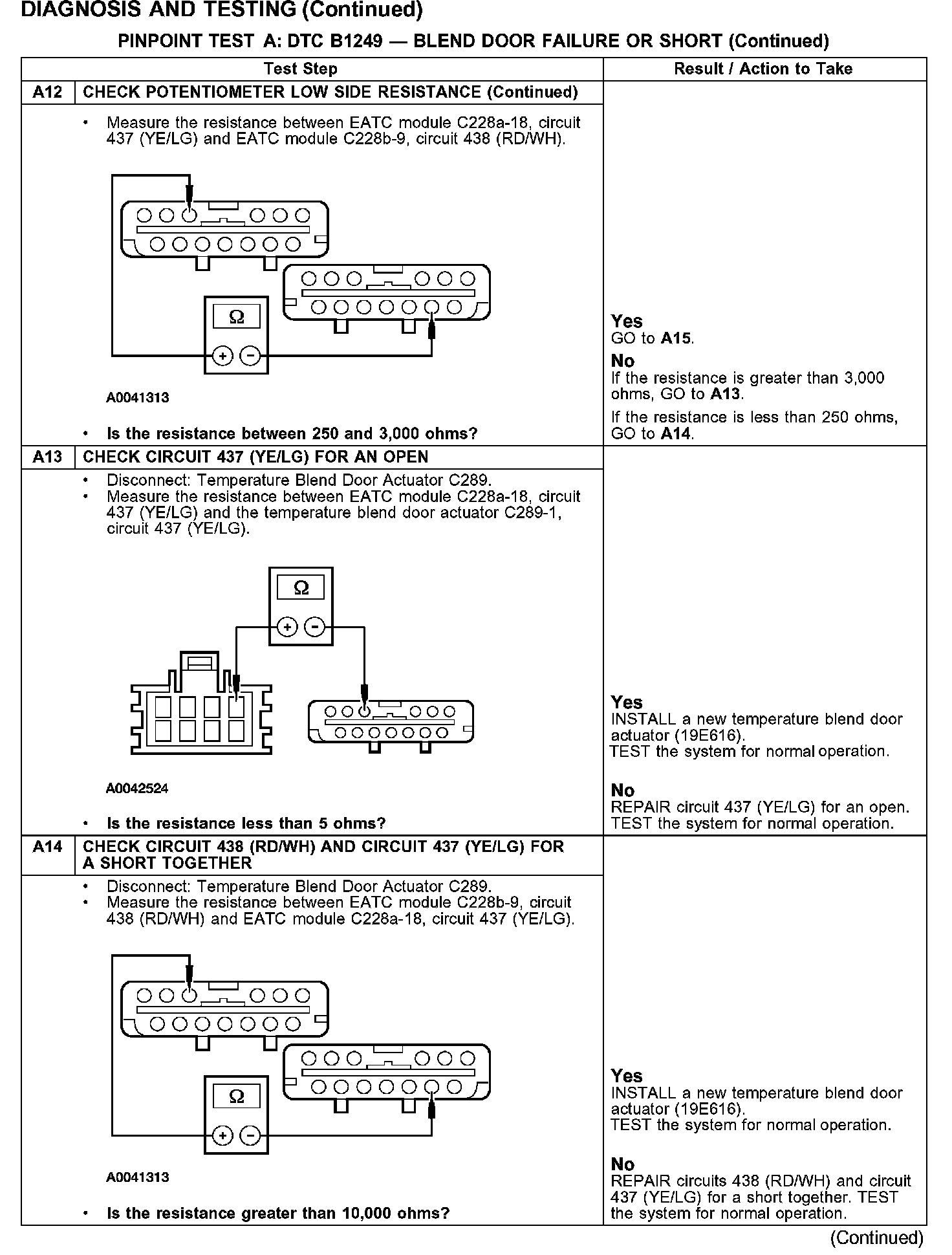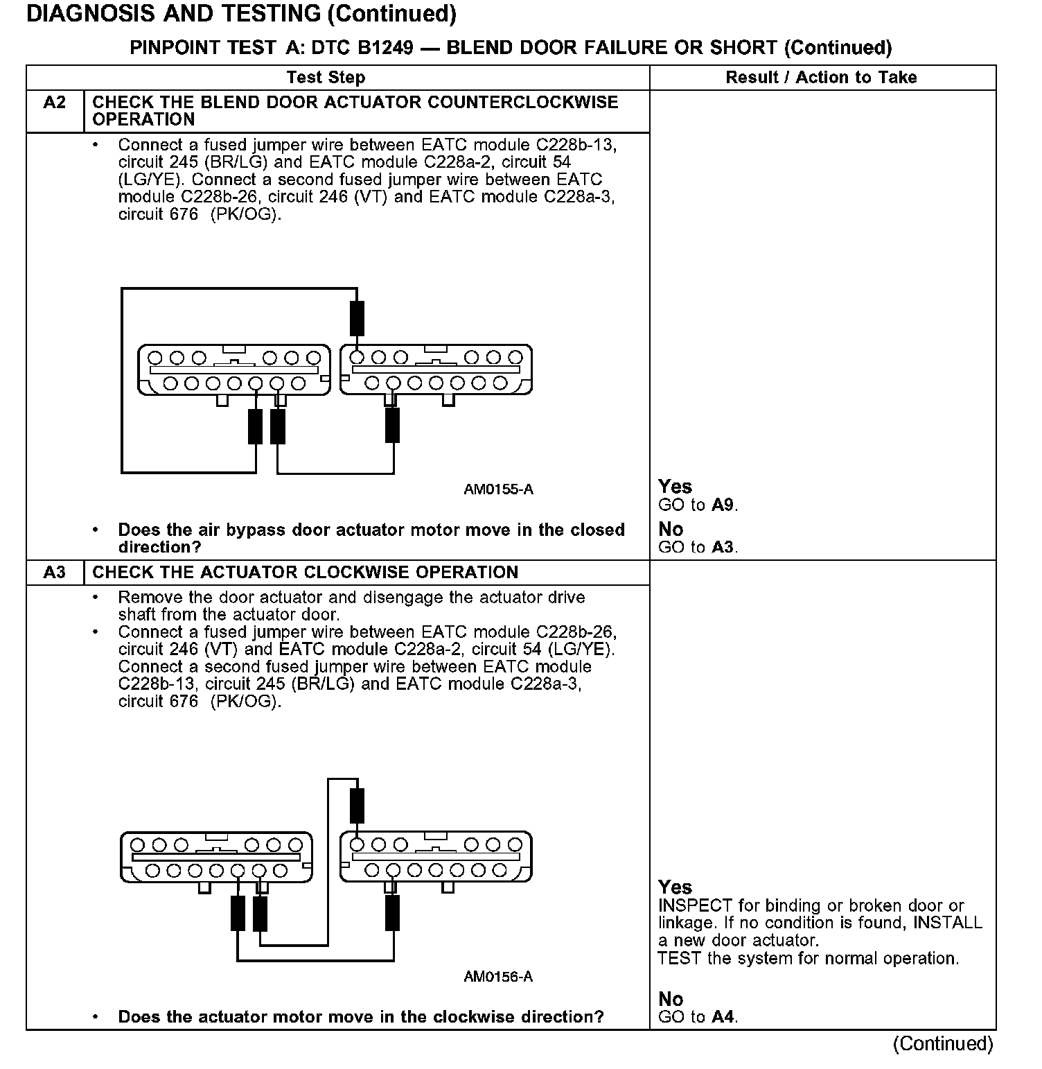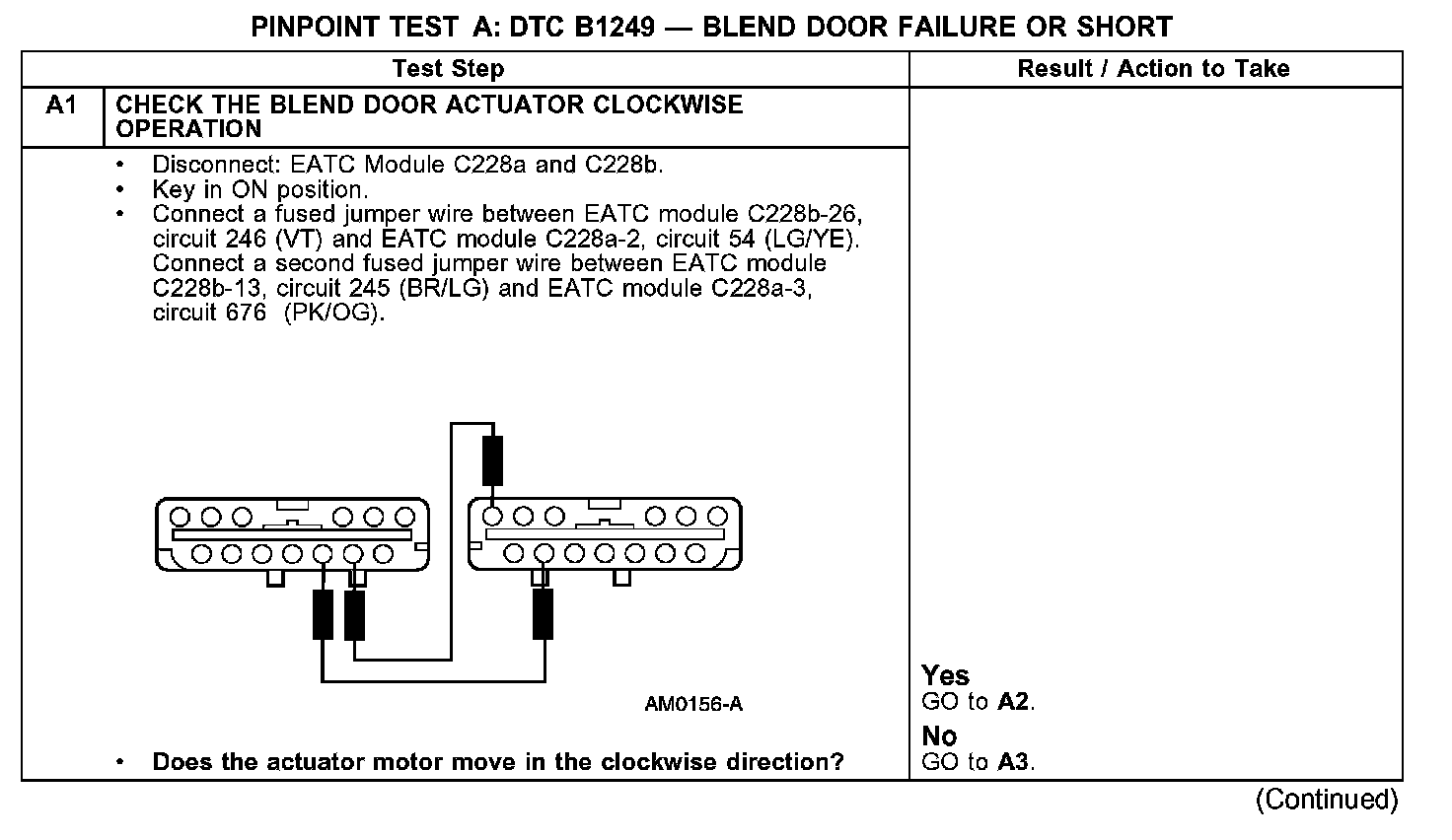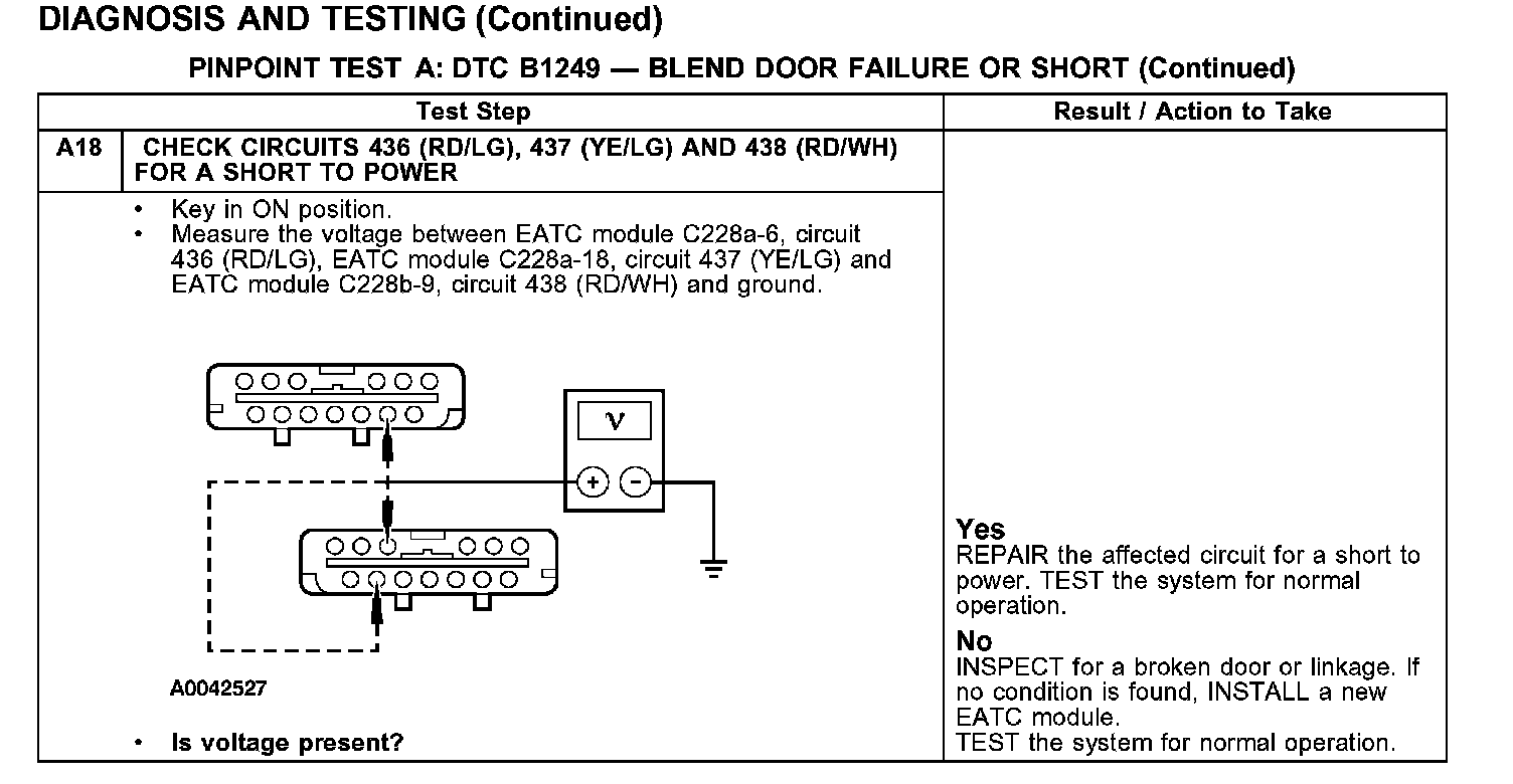 PINPOINT TEST A: DTC B1249 - BLEND DOOR FAILURE OR SHORT