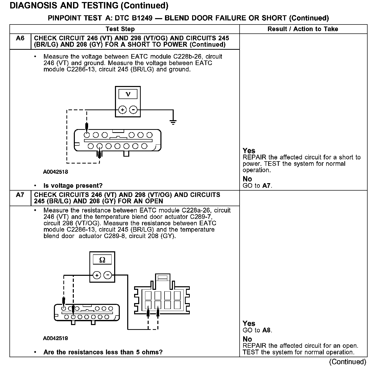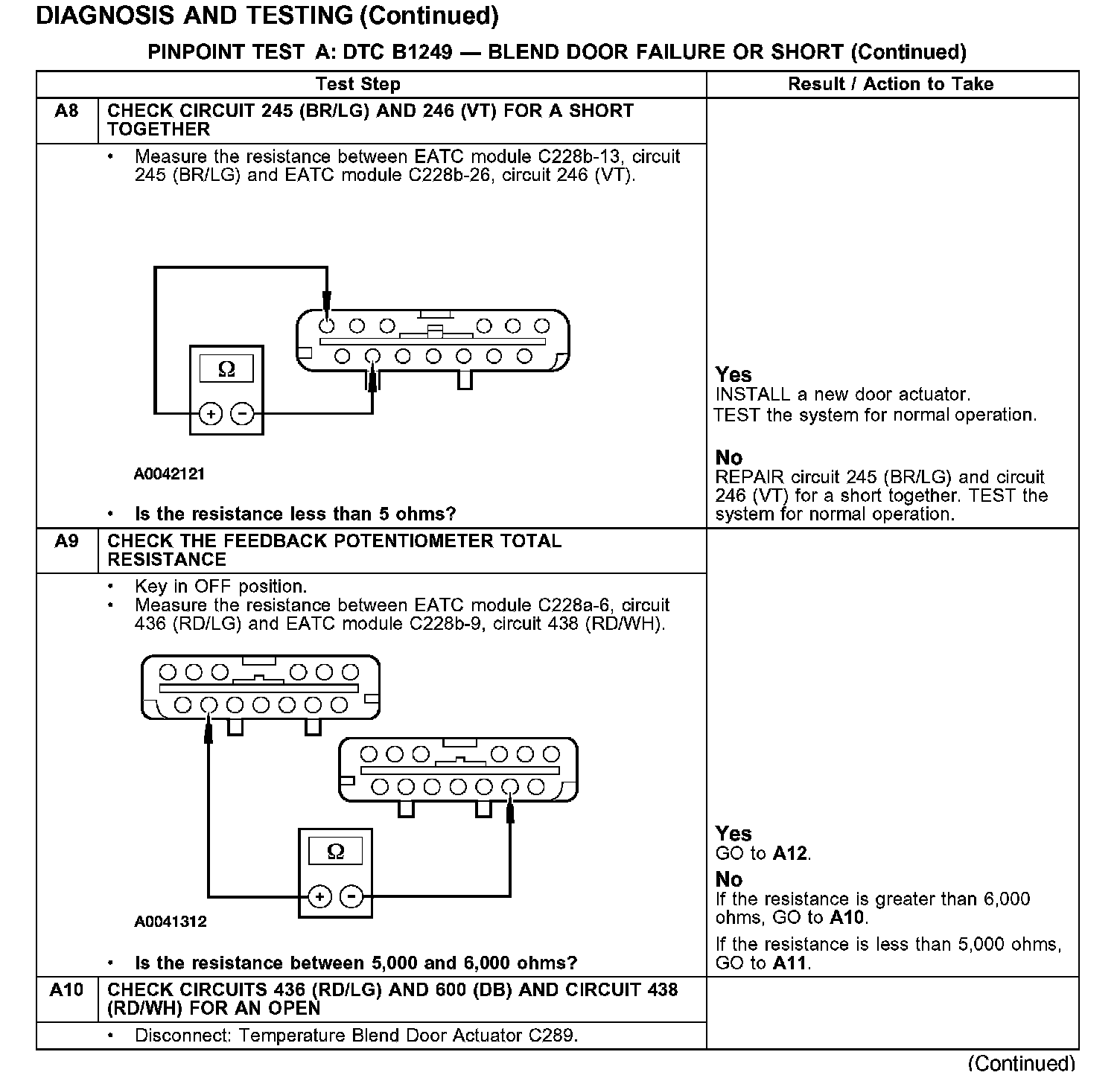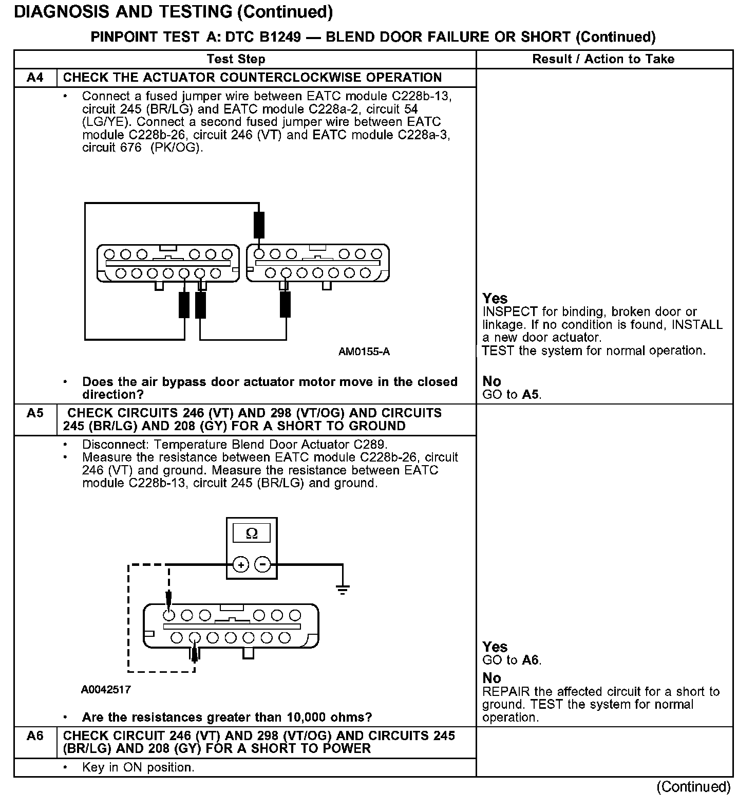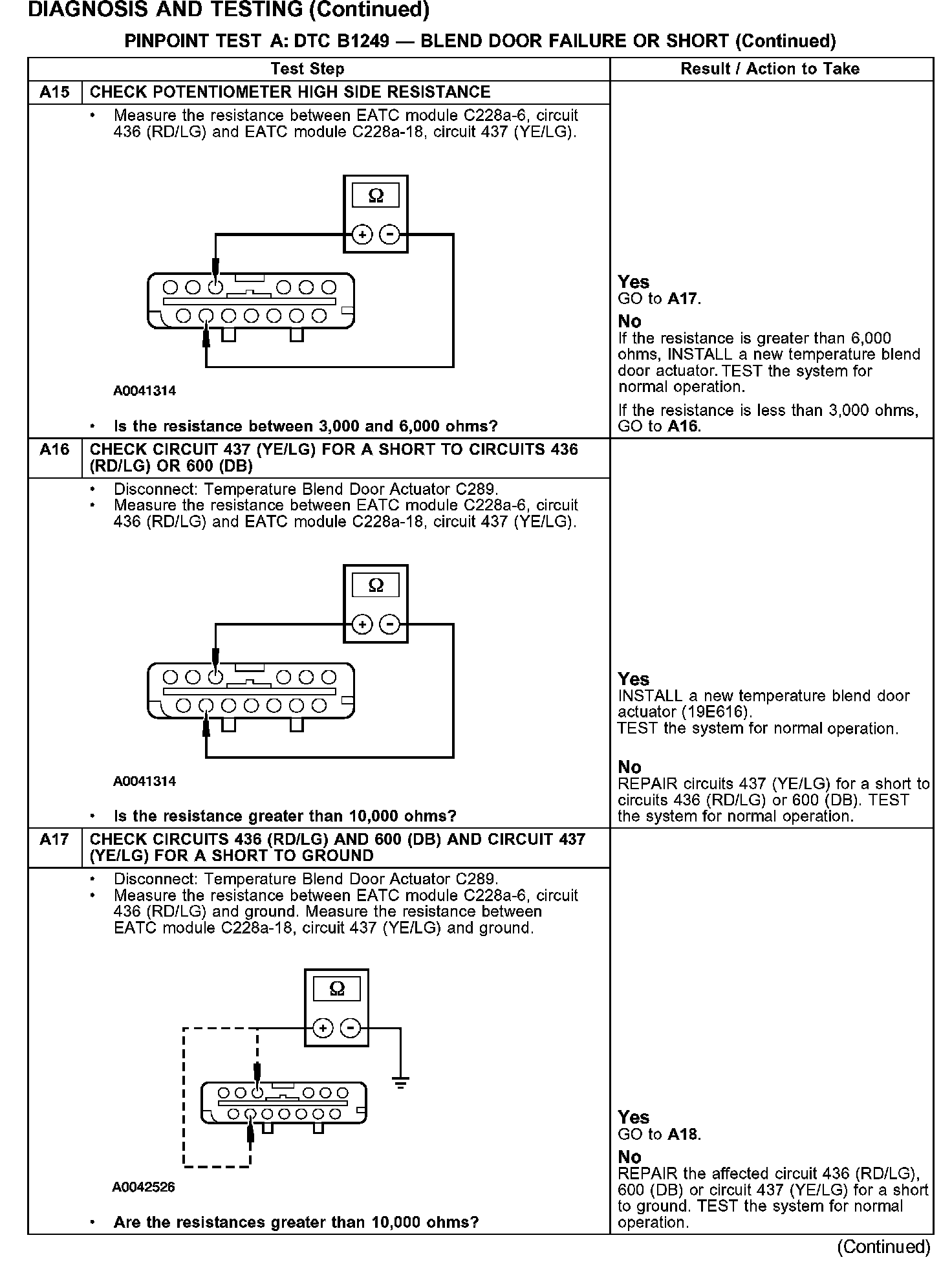 PINPOINT TEST A: DTC B1249 - BLEND DOOR FAILURE OR SHORT