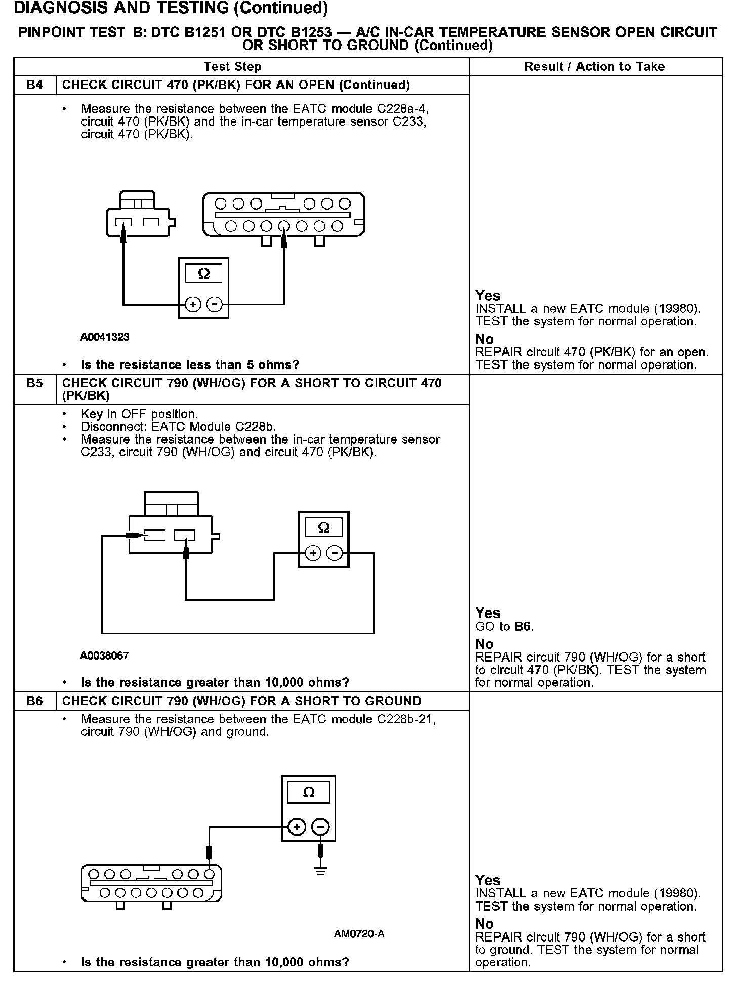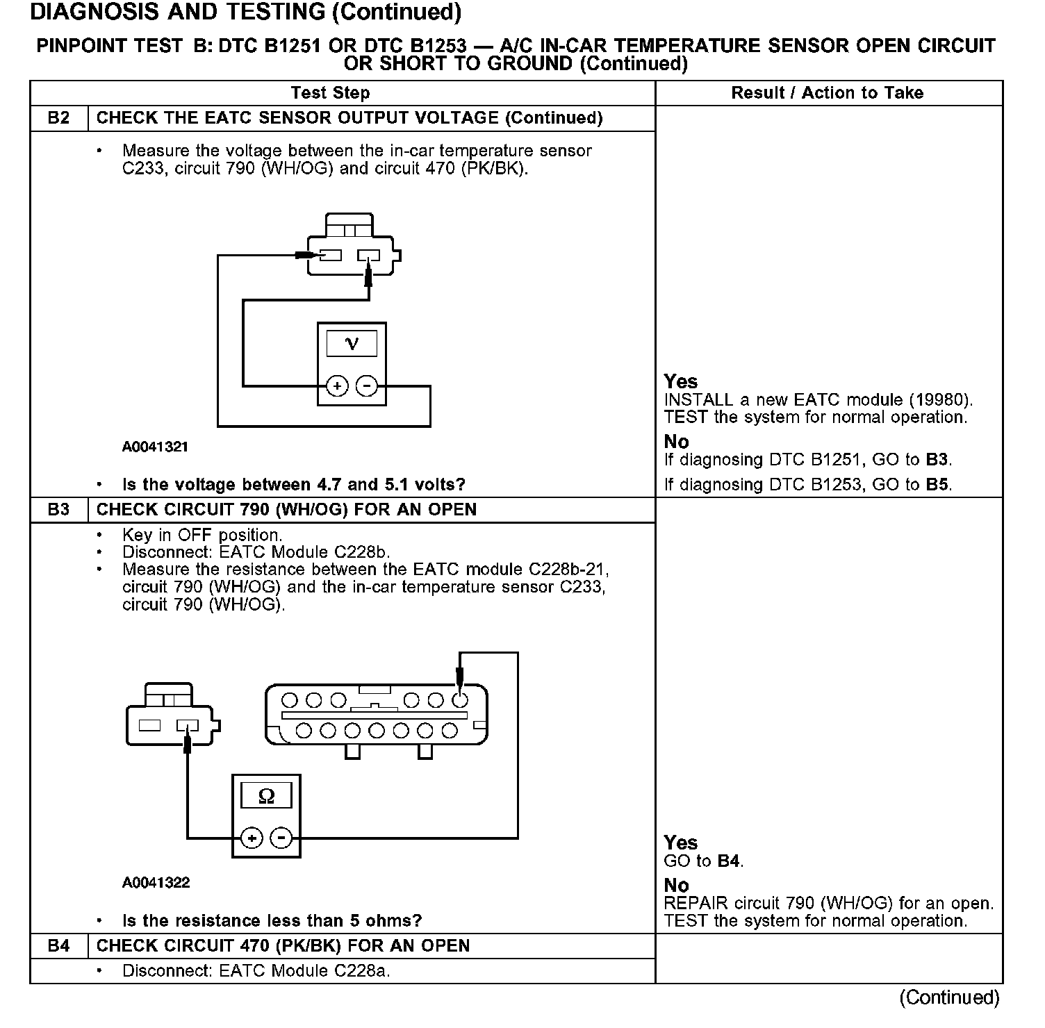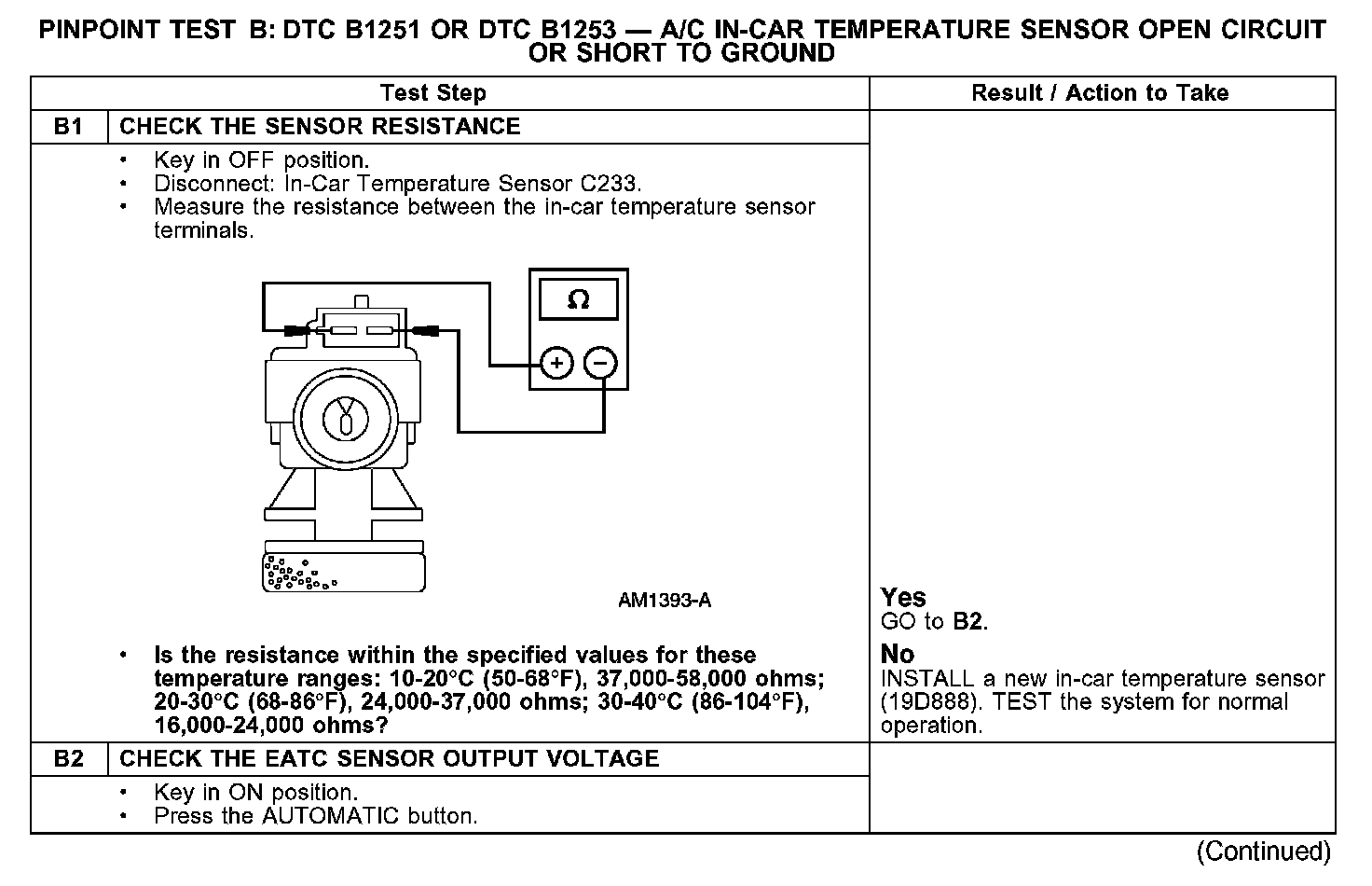 PINPOINT TEST B: DTC B1251 OR DTC B1253 - A/C IN-CAR TEMPERATURE SENSOR OPEN CIRCUIT OR SHORT TO GROUND