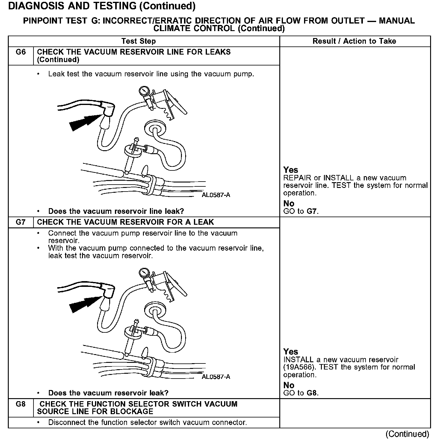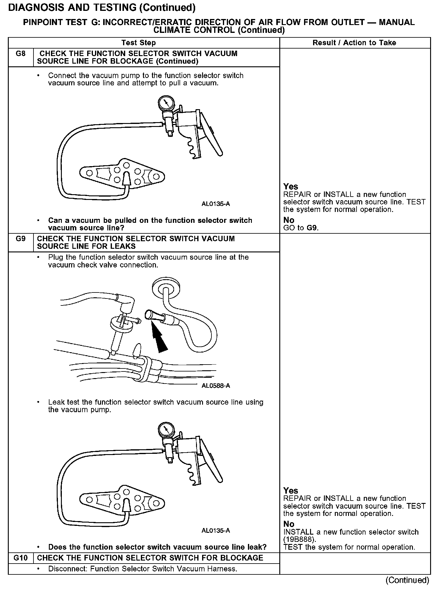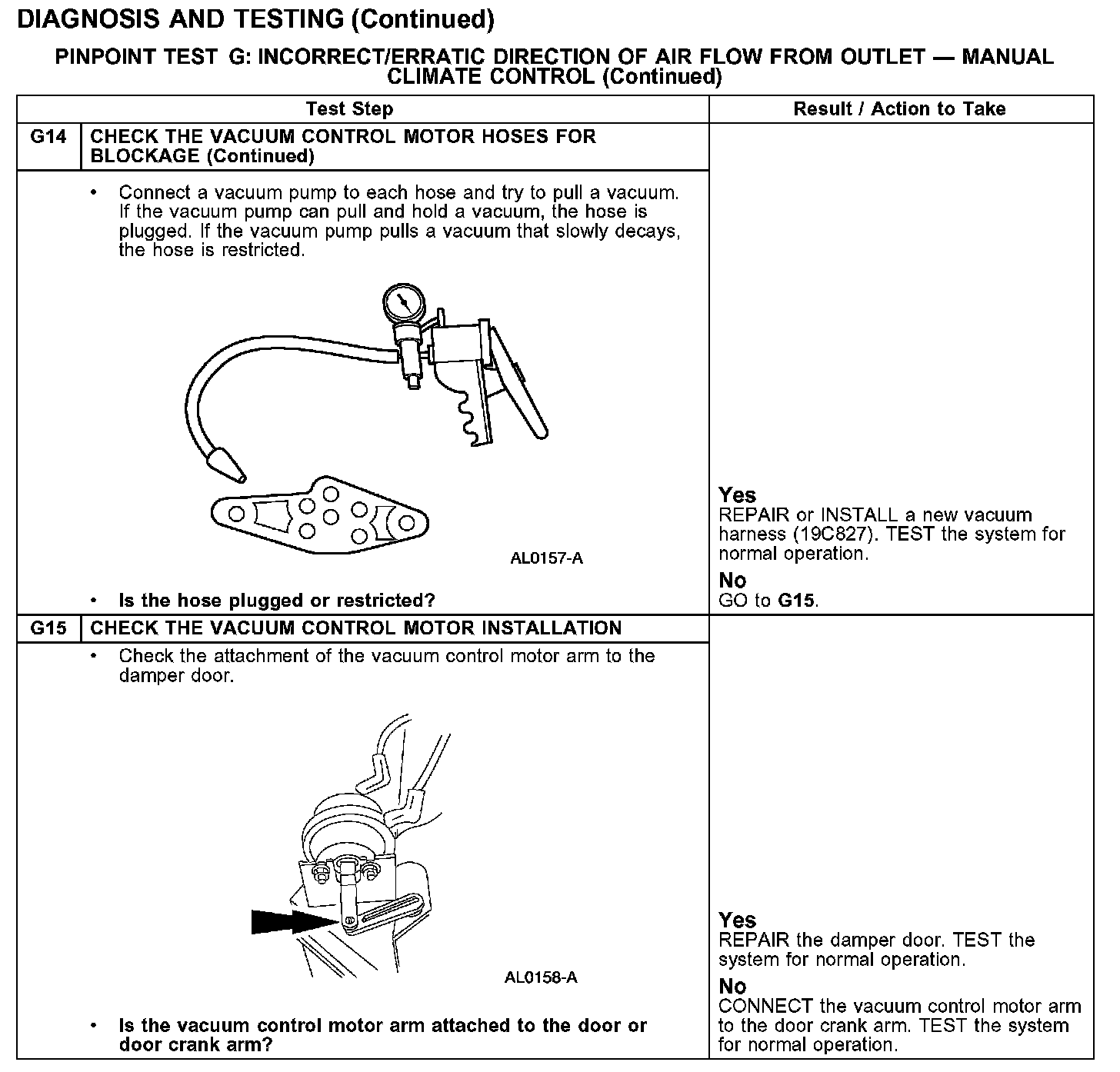 PINPOINT TEST G: INCORRECT/ERRATIC DIRECTION OF AIR FLOW FROM OUTLET - MANUAL CLIMATE CONTROL