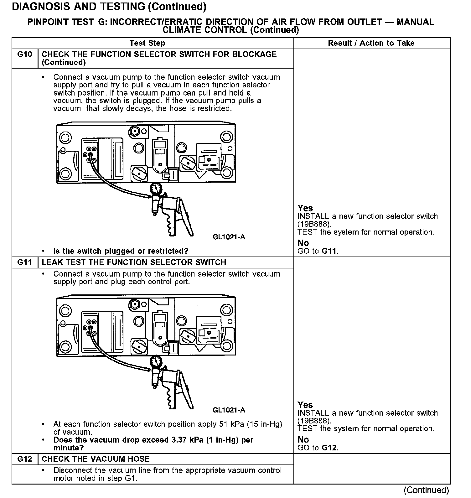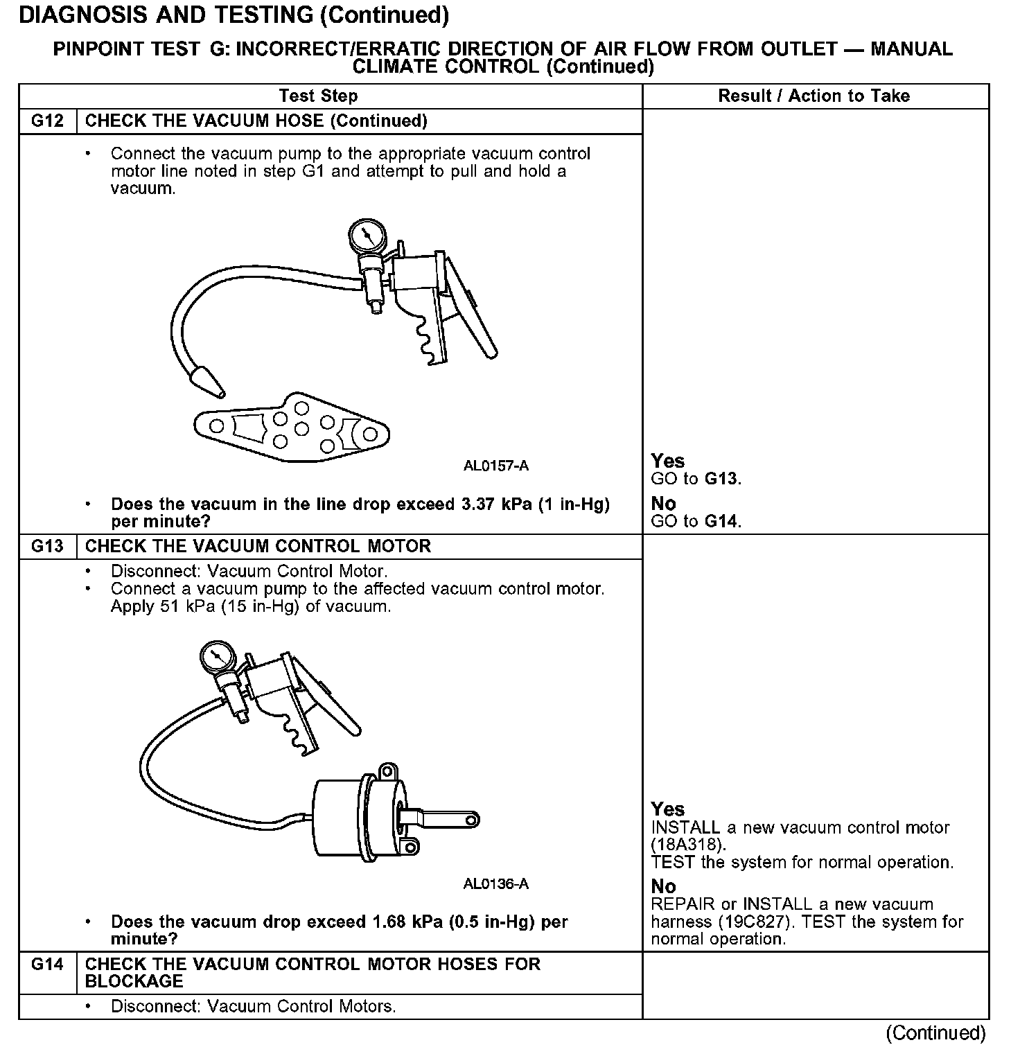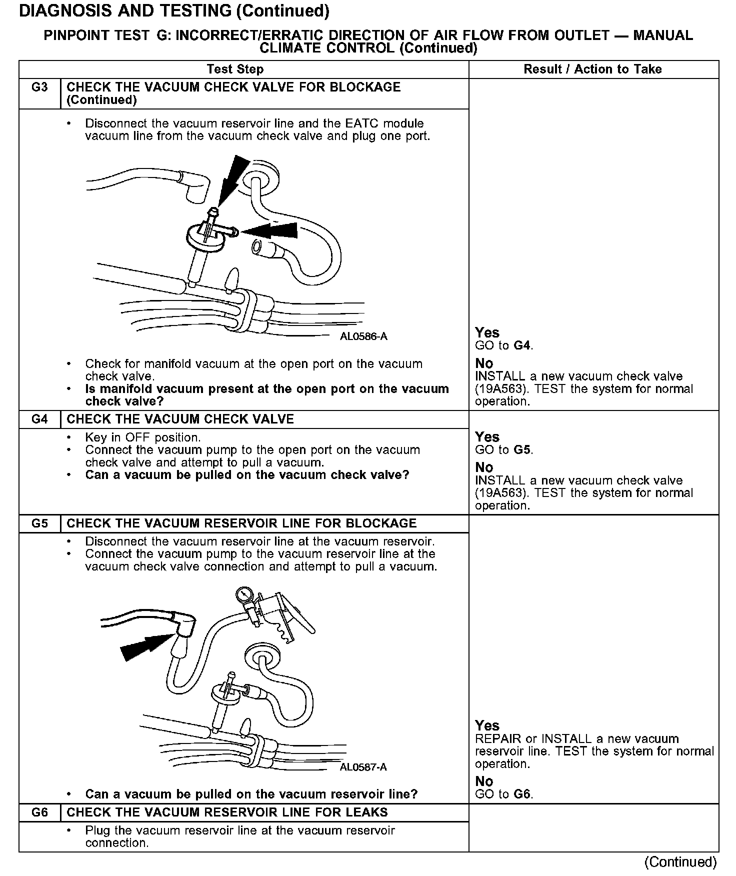 PINPOINT TEST G: INCORRECT/ERRATIC DIRECTION OF AIR FLOW FROM OUTLET - MANUAL CLIMATE CONTROL