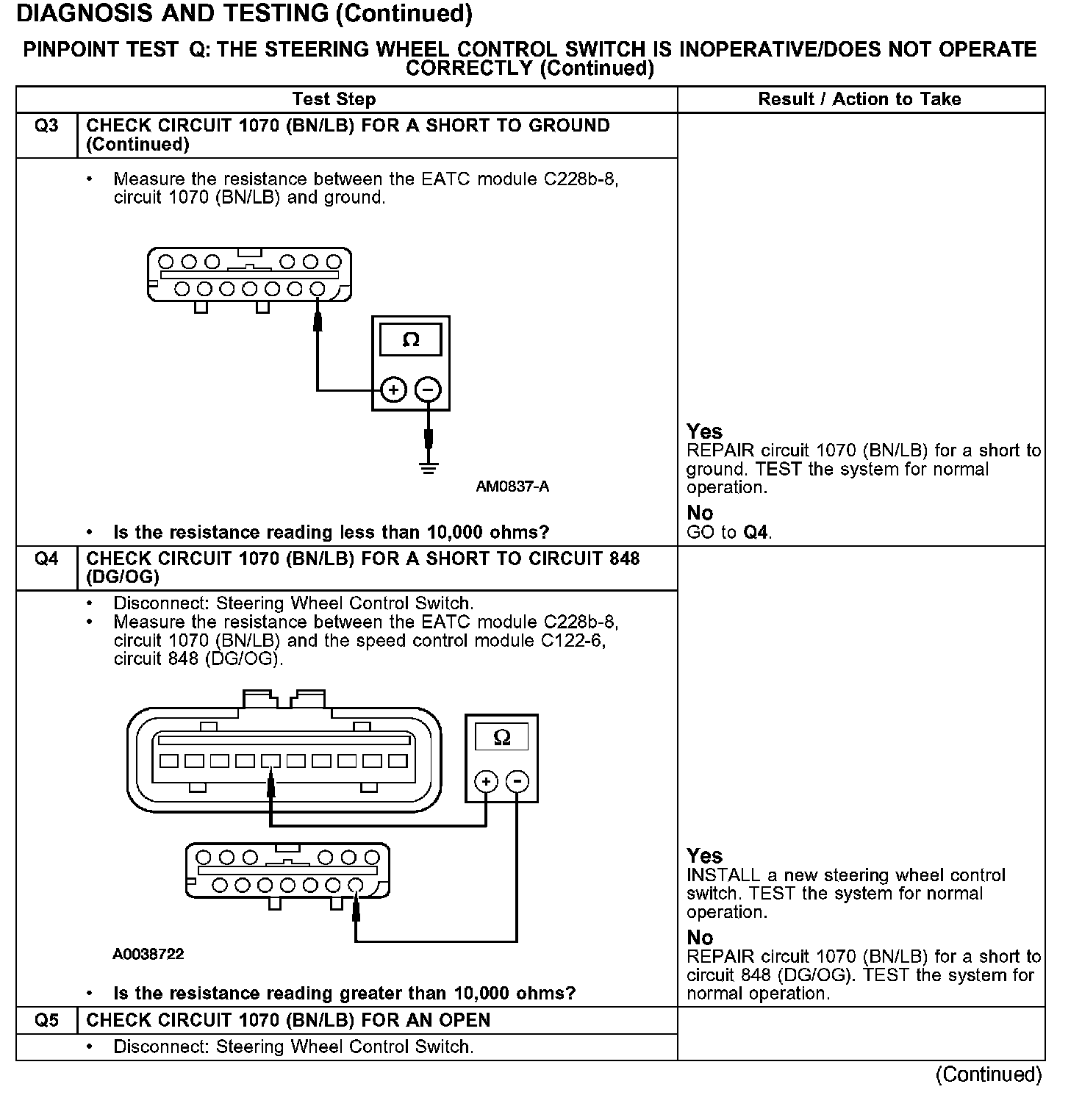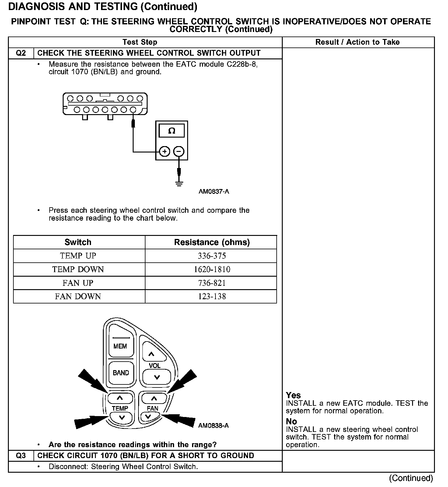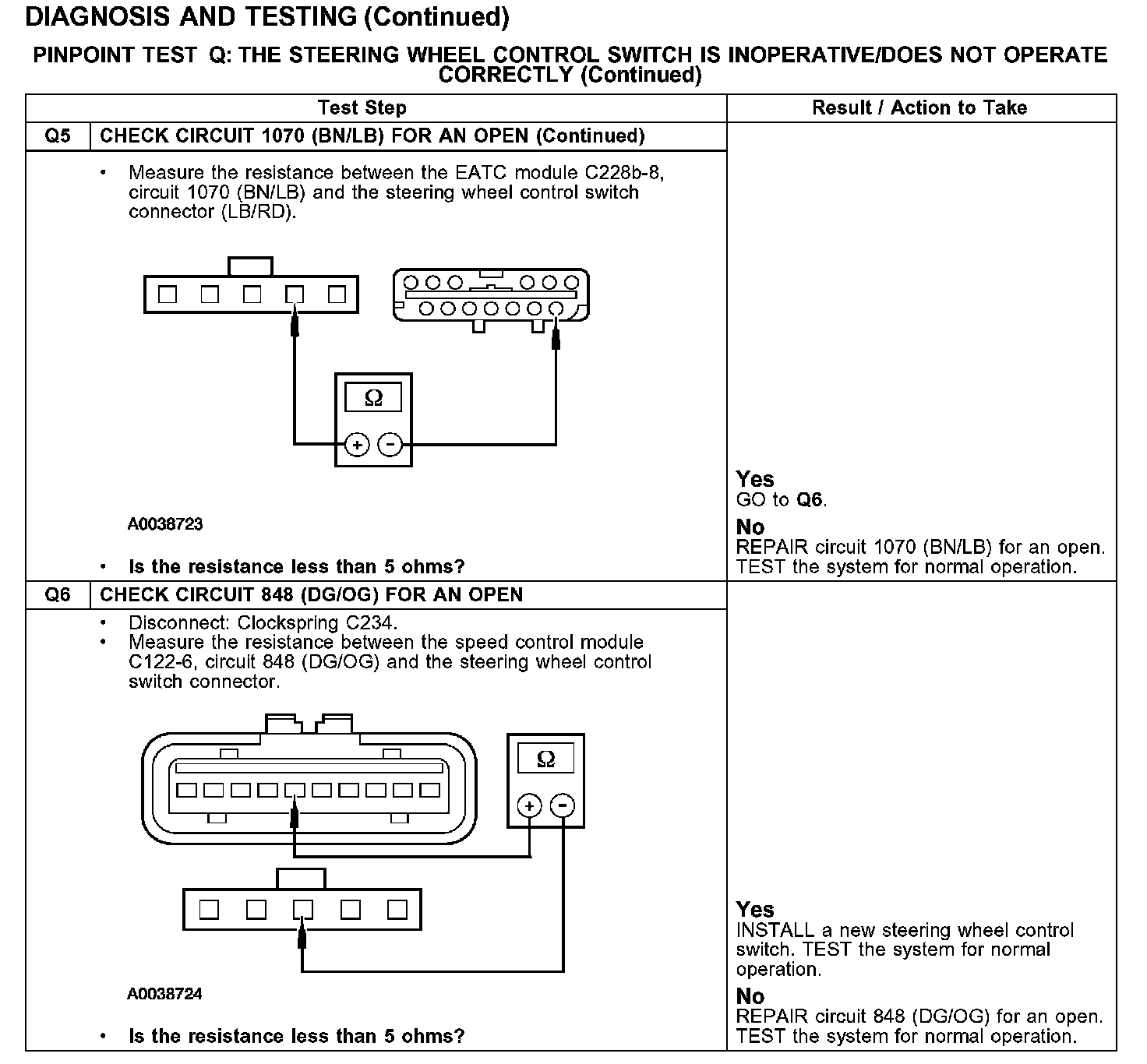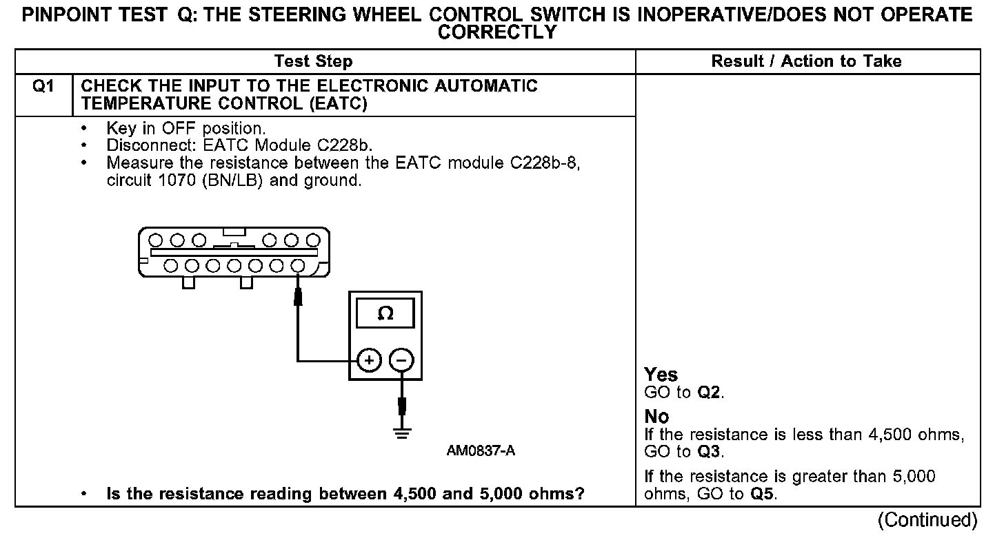 PINPOINT TEST Q: THE STEERING WHEEL CONTROL SWITCH IS INOPERATIVE/DOES NOT OPERATE CORRECTLY