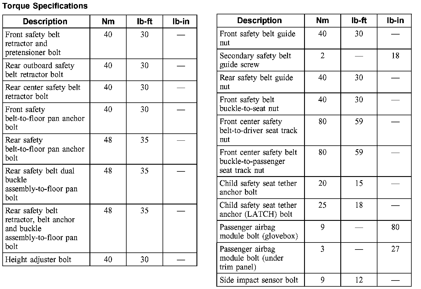 Seat Belt Systems: Specifications