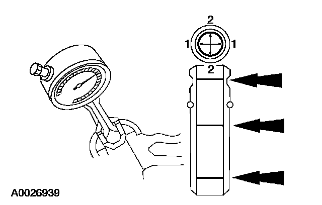 Valve - Guide Inner Diameter1. Measure the inner diameter of the valve guides in two directions where indicated.