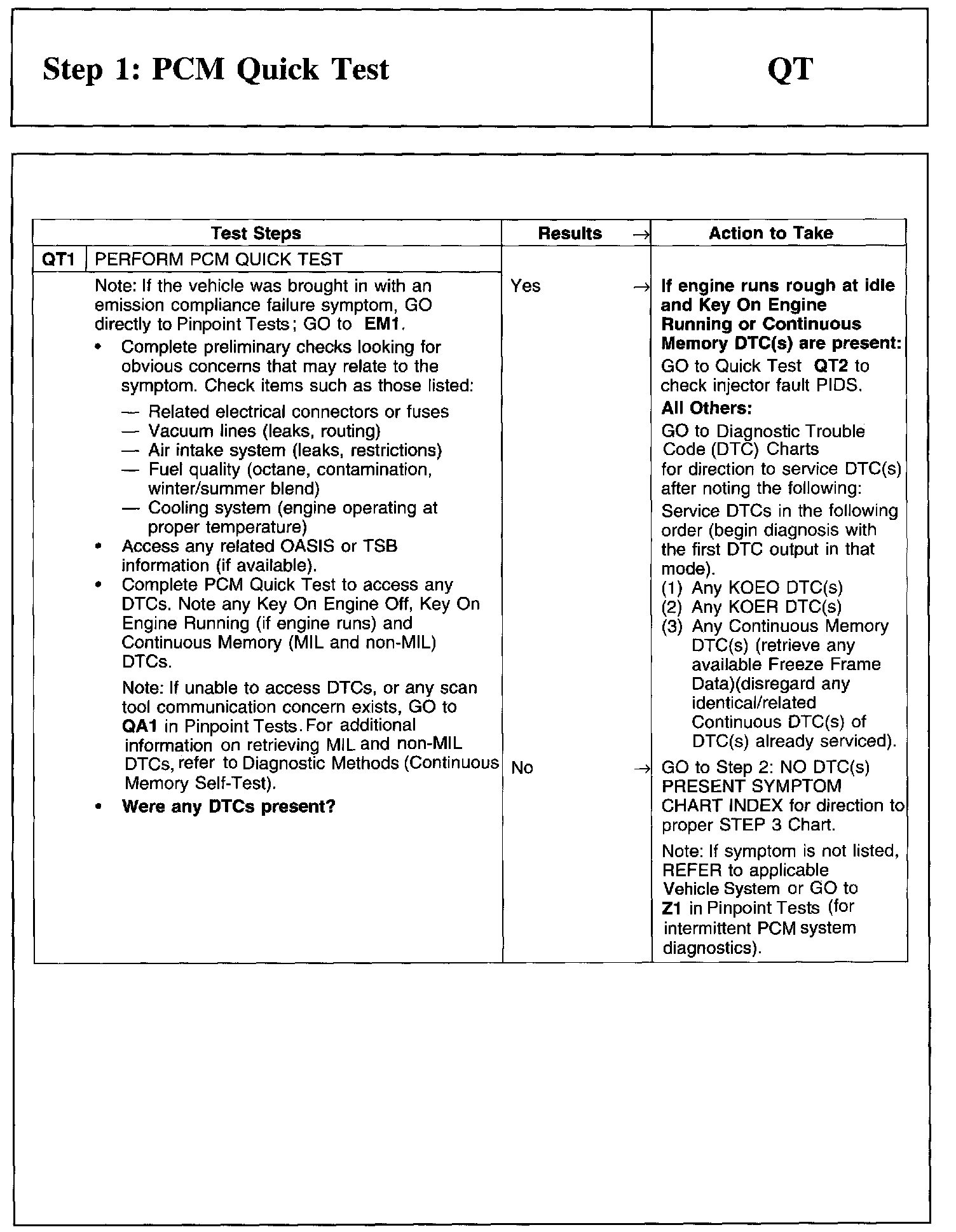 Step 1: PCM Quick Test