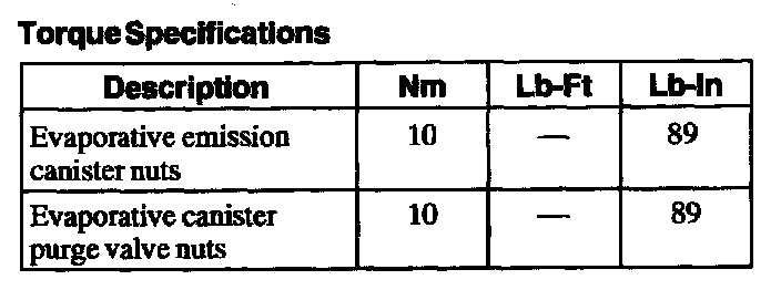 Torque Specifications: