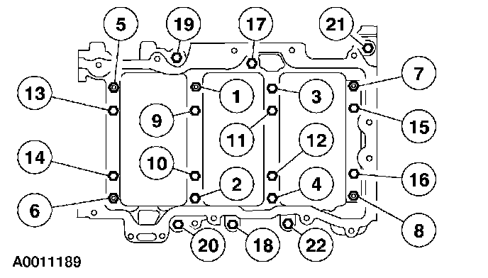 Stage 1: Tighten fasteners 1-8 to 25 Nm (18 ft. lbs.).