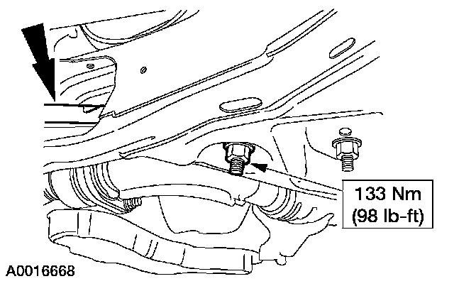 CAUTION: Suspension fasteners are critical parts because they affect the performance of vital components and systems and their failure can result in major service expense. A new part with the same part number must be installed if installation becomes necessary. Do not use a new part of lesser quality or substitute design. Torque values must be used as specified during reassembly to make sure of correct retention of these parts.