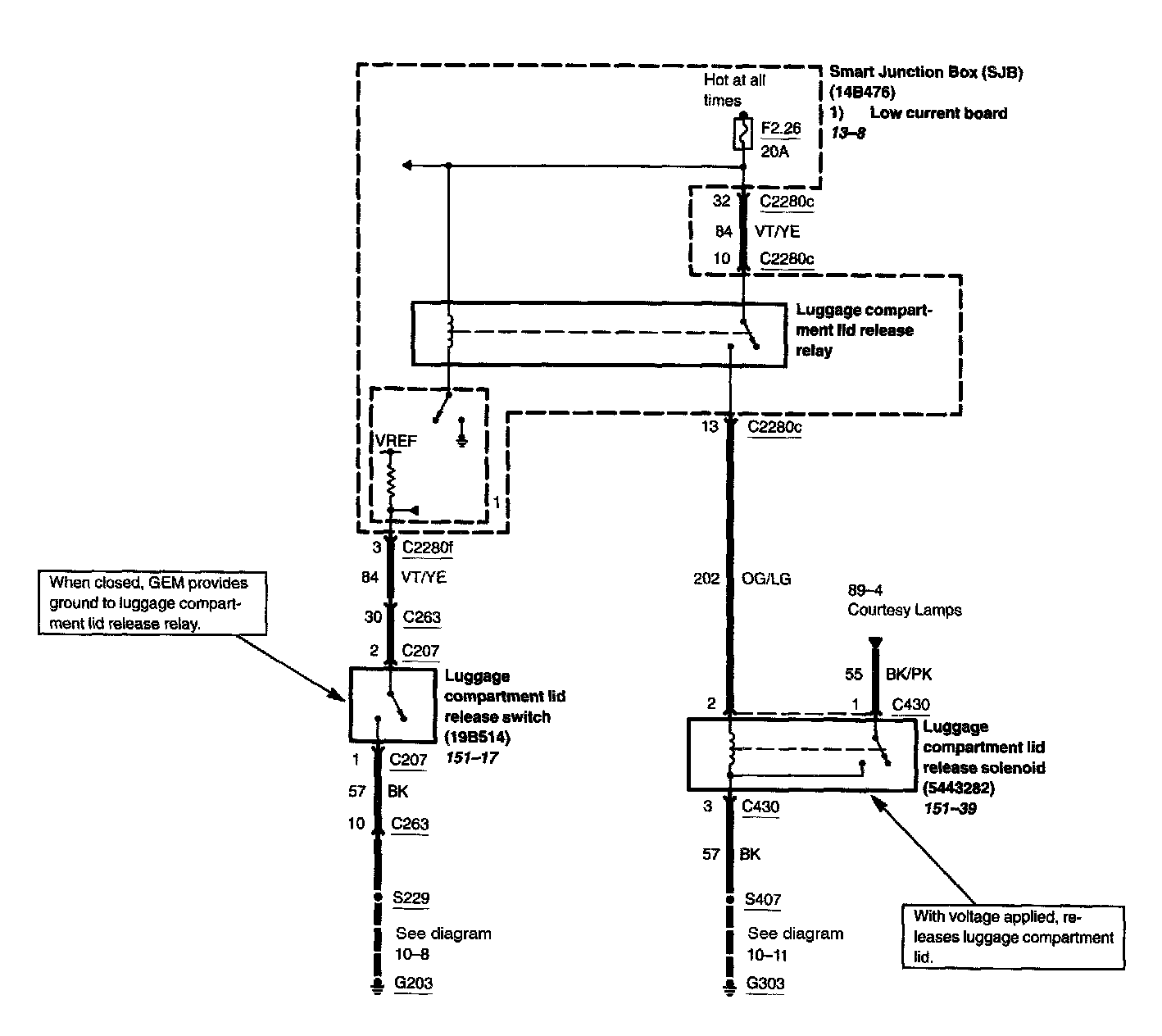 LUGGAGE COMPARTMENT LID RELEASEPLEASE NOTE: Some diagrams may appear to be missing because of gaps in the number sequences. These "gaps" are actually for diagrams that do not apply to the vehicle model selected.