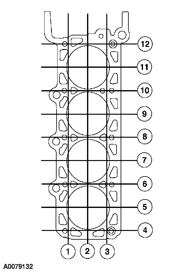 Using a straightedge and a feeler gauge, inspect the cylinder head for flatness in the sequence shown. If the cylinder head is distorted, install a new cylinder head.