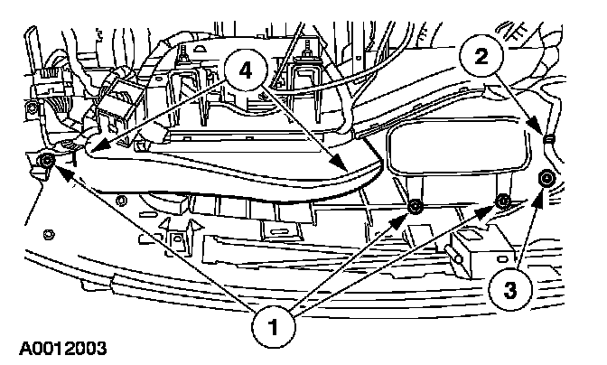 1. Remove the plenum chamber. Refer to: Heating and Air Conditioning, Heater Core, Service and Repair, Heater Core and Evaporator Core Housing, Heater Core and Evaporator Core Housing