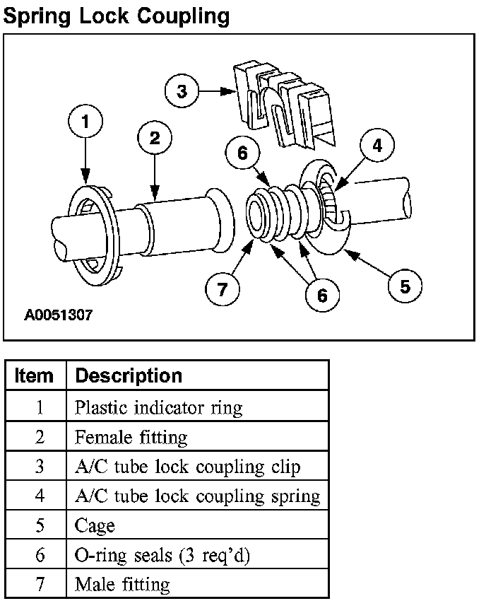 - An A/C tube lock coupling clip may be used to secure the coupling but is not required.