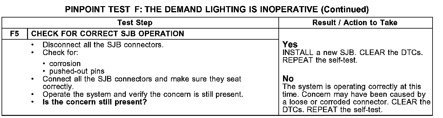 PINPOINT TEST F: THE DEMAND LIGHTING IS INOPERATIVE