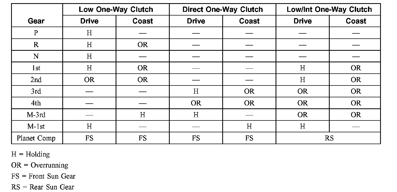 Band and Clutch Application Chart
