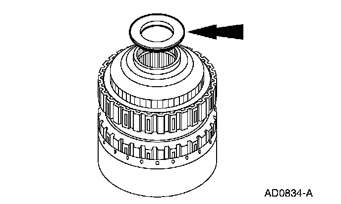 2 The low one-way clutch outer race groove must face up.