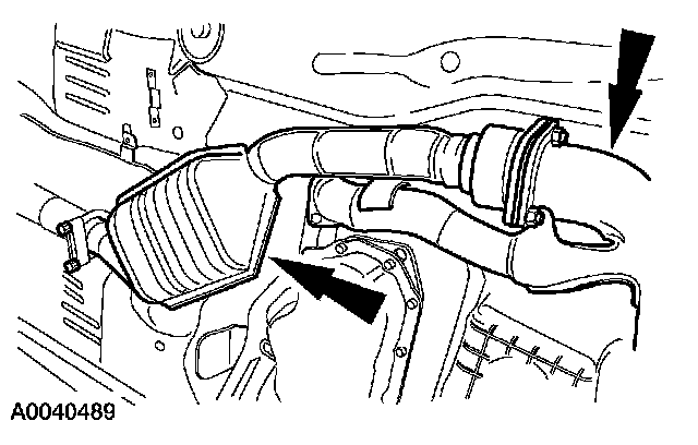 Remove the front nuts from the front catalytic converter assembly.