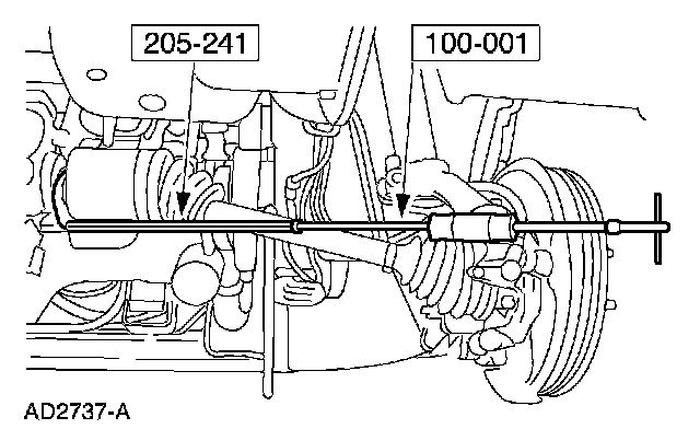 Using the special tools, remove the LH halfshaft from the transaxle and position out of the way.
