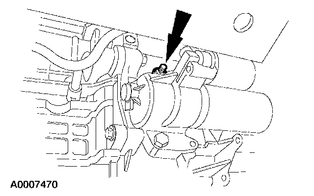 15. Remove the nut from the coolant pipe bracket.
