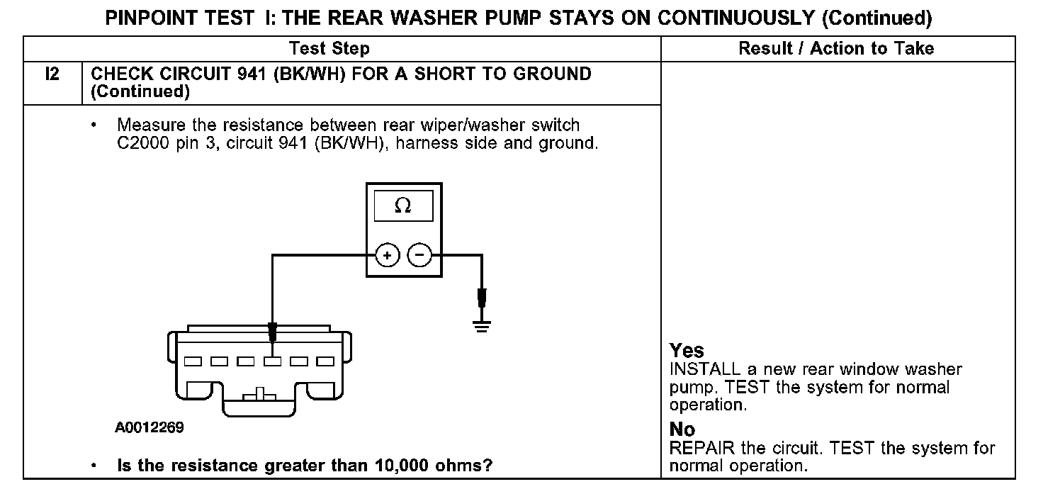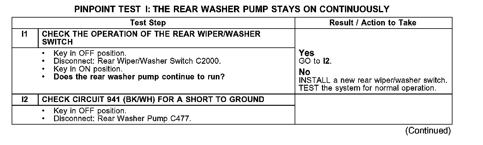 PINPOINT TEST I: THE REAR WASHER PUMP STAYS ON CONTINUOUSLY