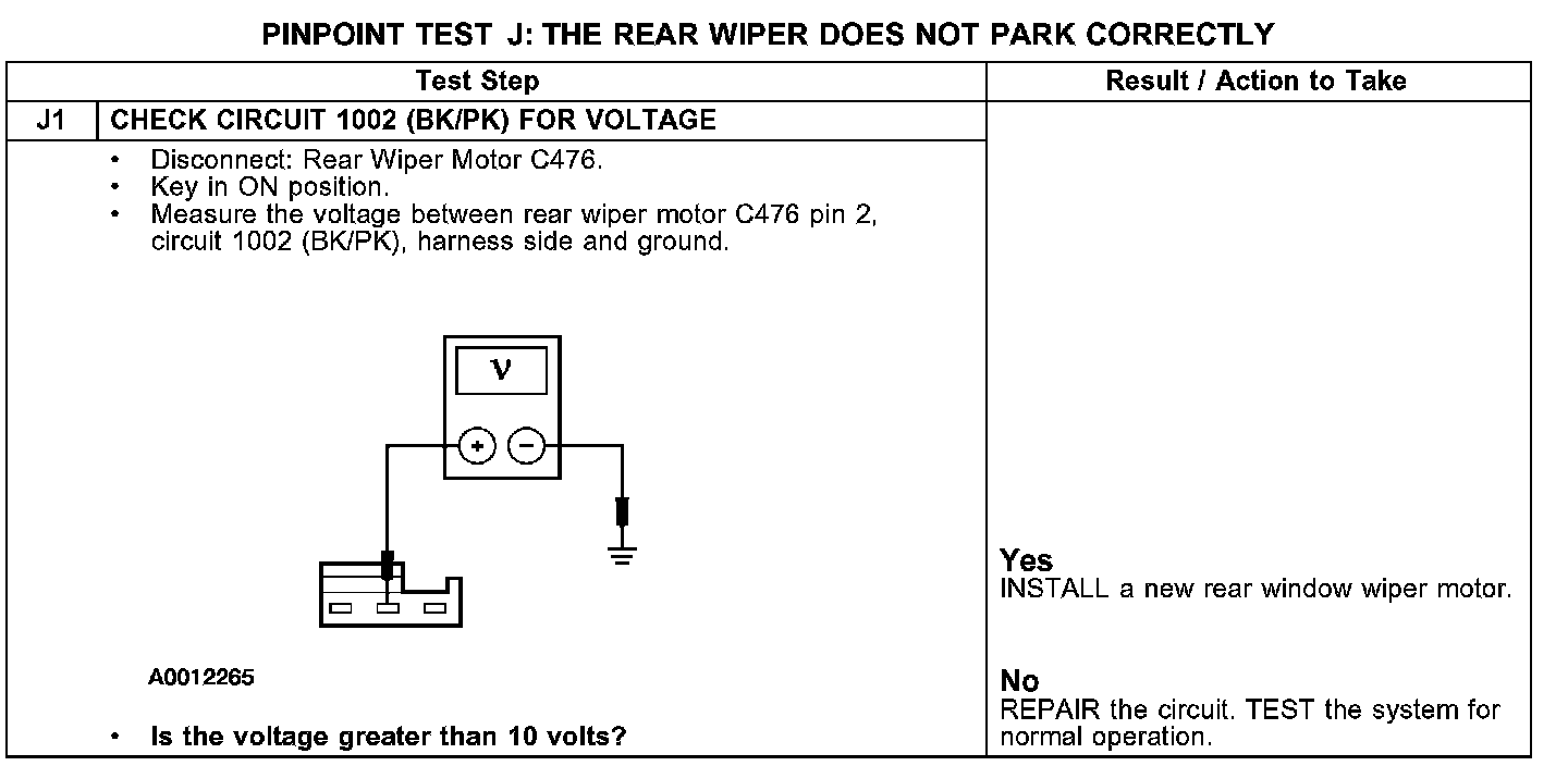 PINPOINT TEST J: THE REAR WIPER DOES NOT PARK CORRECTLY